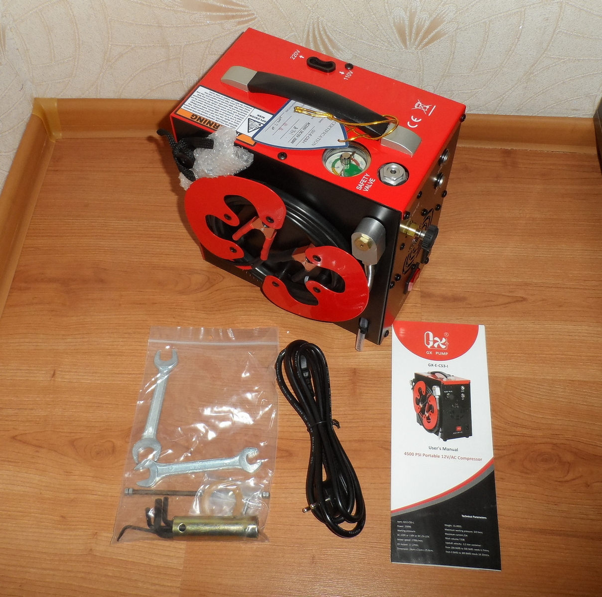 Компрессор ВД GX CS3 12В. Встроенный блок питания для подключения к сети 220 в. Функция автовыключения по заданному давлению. Охлаждение воздушное, безмаслянный. Отличное решение для авто и дома. Комплект на фото.