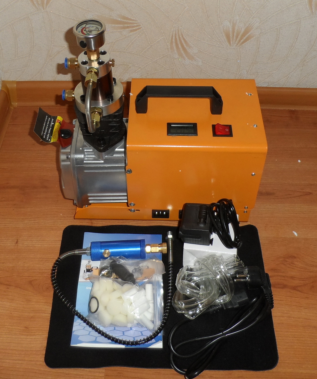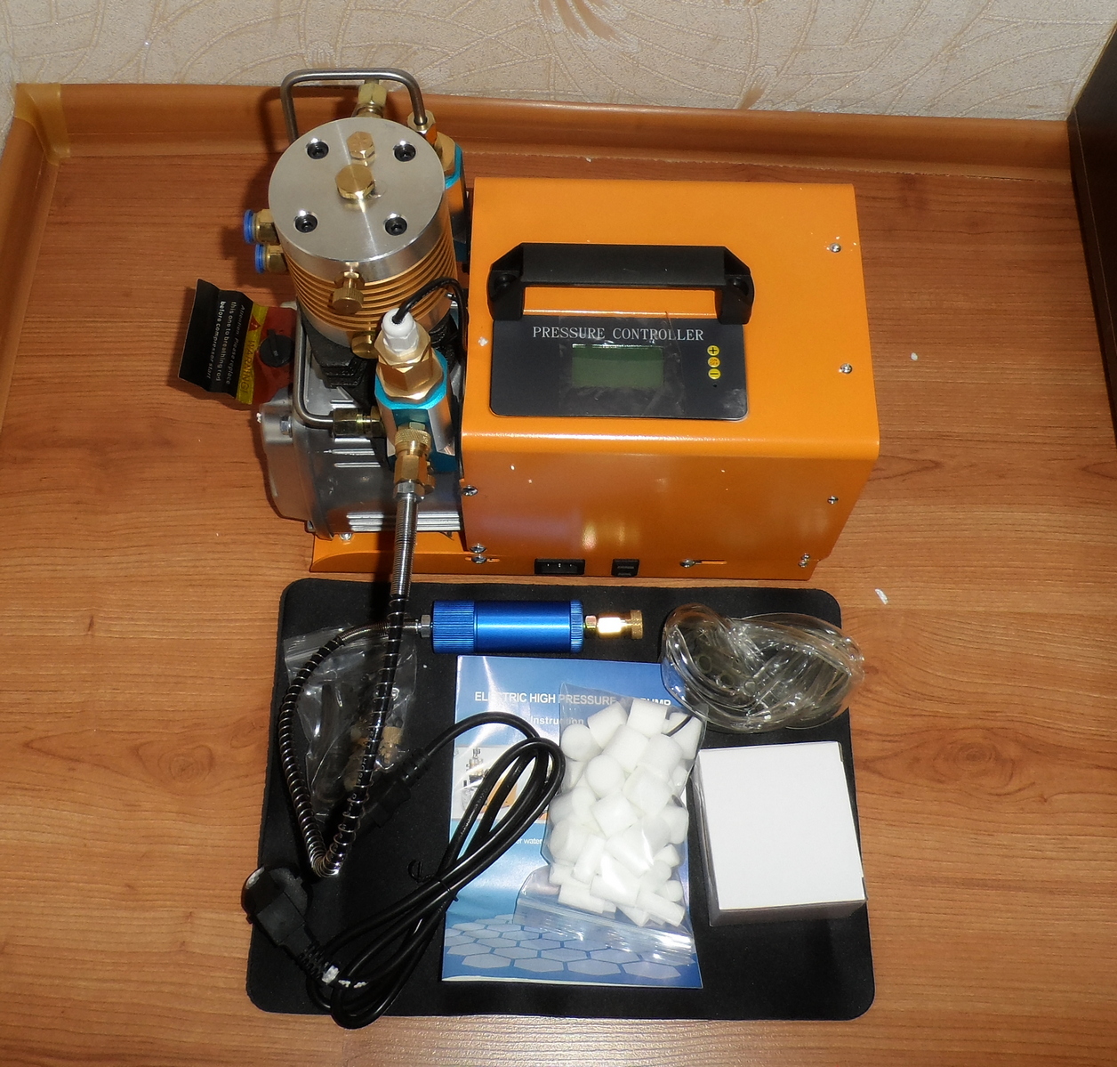 Комплектация: компрессор, погружная водяная помпа, маслоотделитель для шланга ВД, шланг ВД с фостером, манометр, противоскользящий коврик, комплект ЗИП, кабель 220В, руководство на английском.