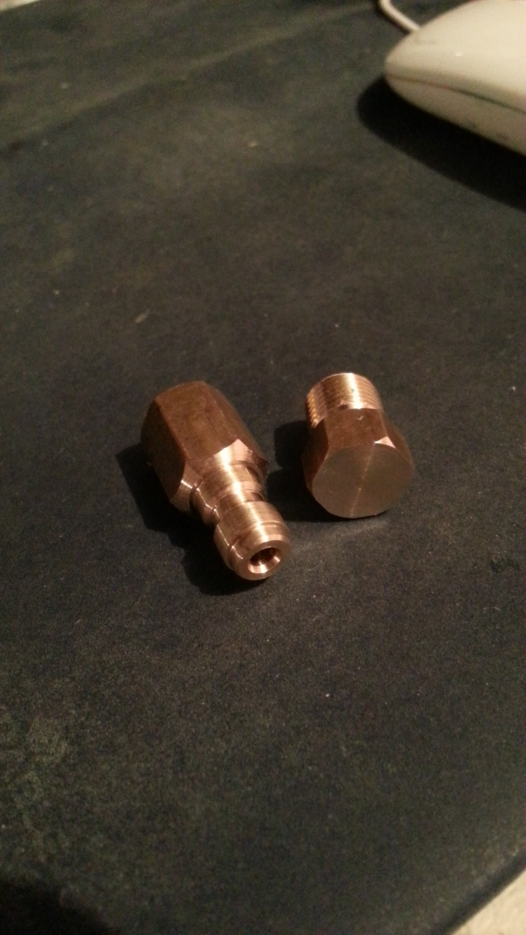 Да, переходник мама-мама. Про штуцер в принципе неглядя скажу, что резьба там 1/8, т.к. он спокойненько вкручивается вместо шланга в мою зарядную станцию. Так что его уже можно делать.