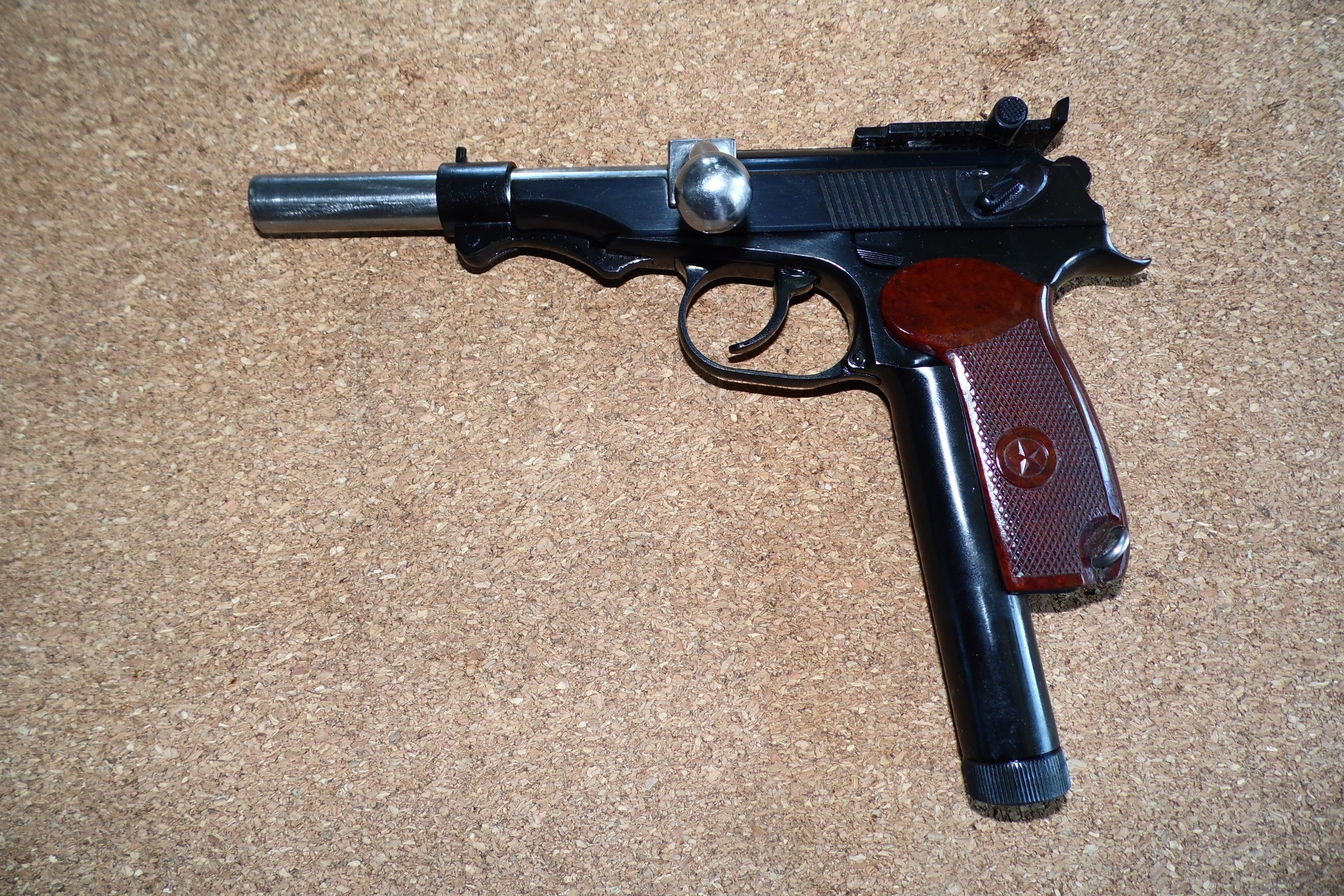 Ну и что? Ладно, пусть не ММГ, а тюненая пневма. Если человек приводит свой МР-654 или Мр-656 максимально внешне похожим на боевой, то помимо кобуры желательно иметь и оригинальное наставление.