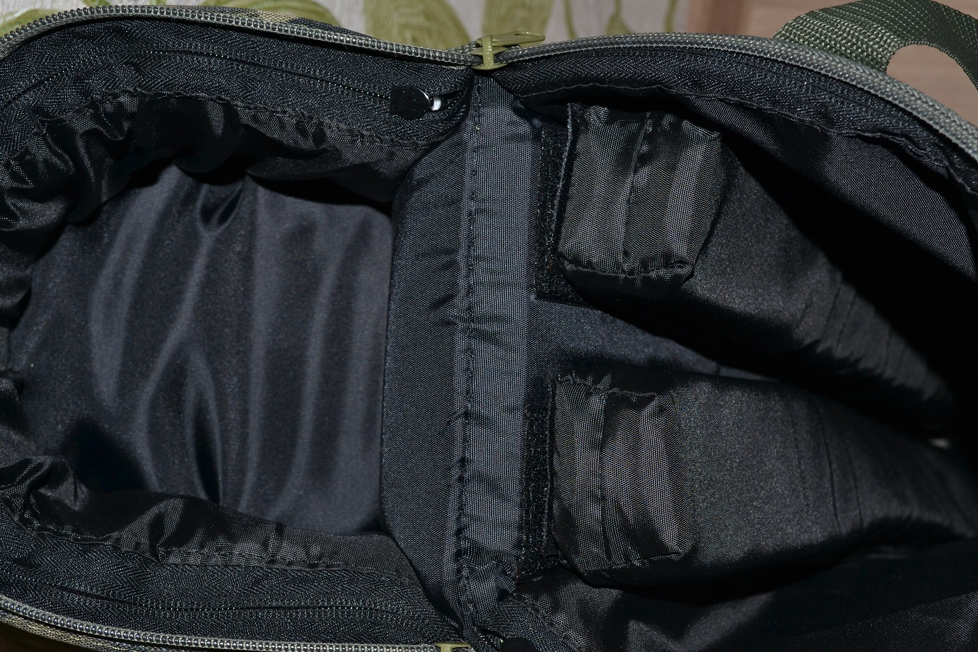 Из изменнений, появилось две колбаски на липучке и плотное дно, плечевой ремень на съемных карабинах.