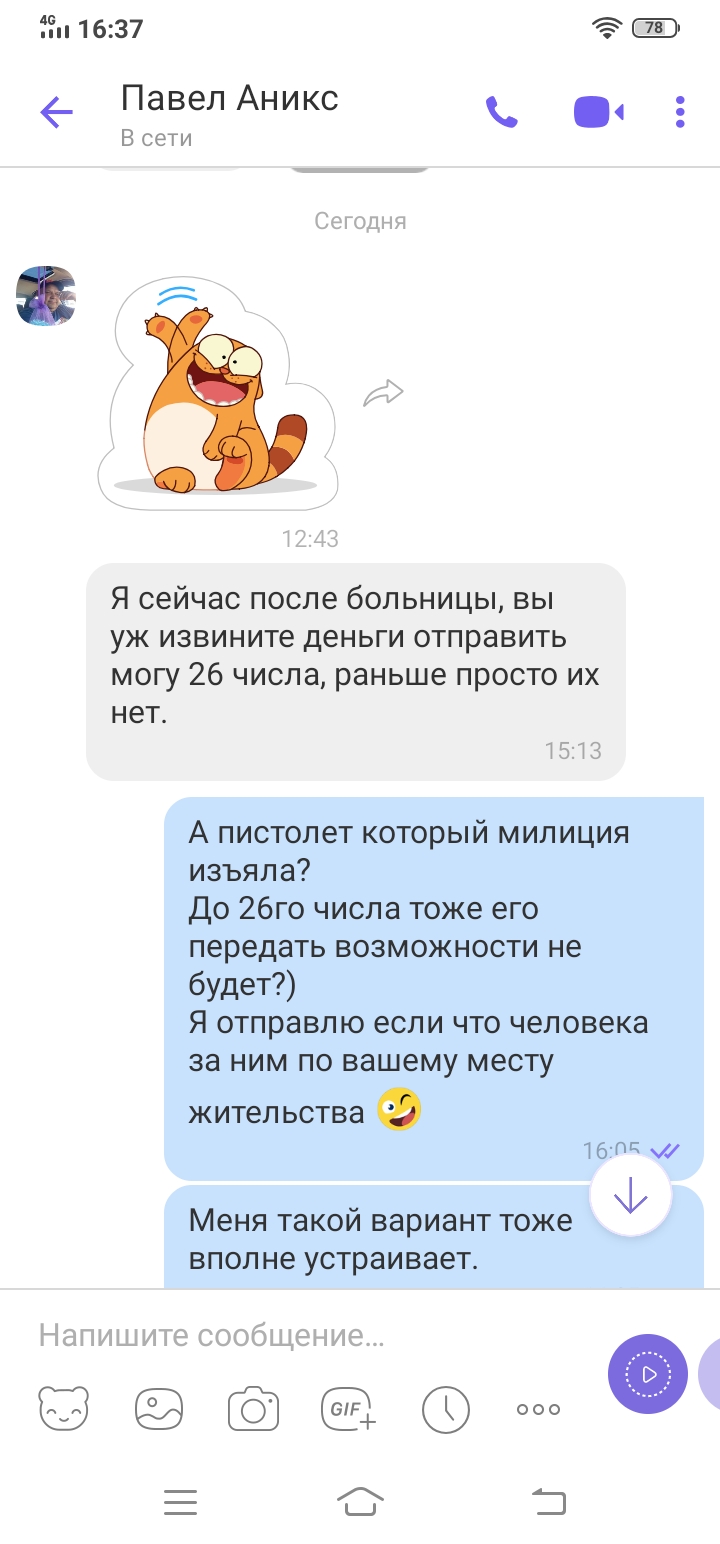 , один в один- после обращения в ОВД гражданин сам вышел на связь и вернул деньги,в замен потребовал расписку,что вопросов к нему не имею.