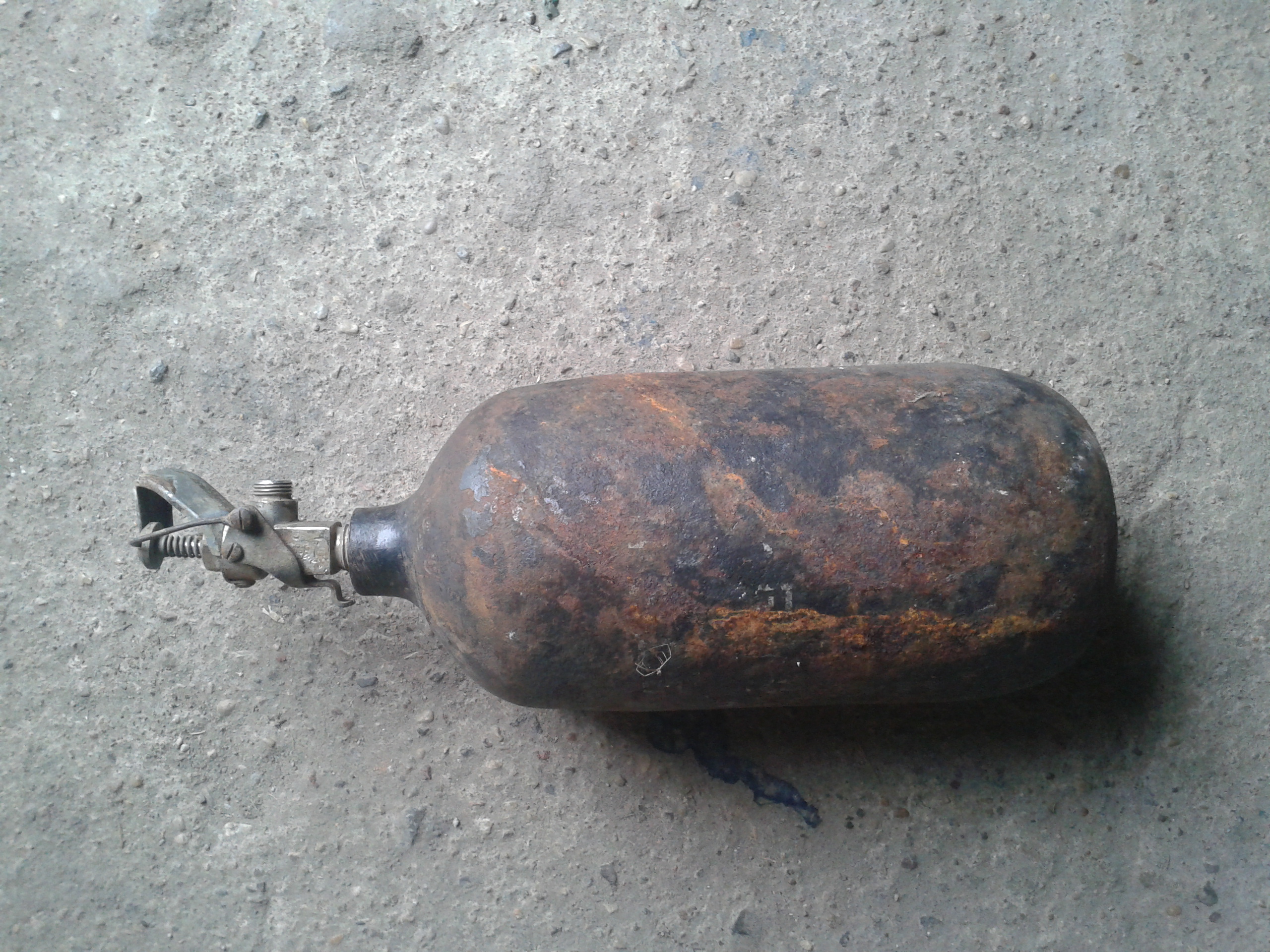 Лет тридцать назад один толковый мужичок придумал,как такой баллон,как на фото,использовать... Вот только фитиль он не рассчитал,и бросая с моста,промедлил секунду... Сам не видел,пацаны рассказывали,долго миллиционеры собирали кусочки на мосту том......