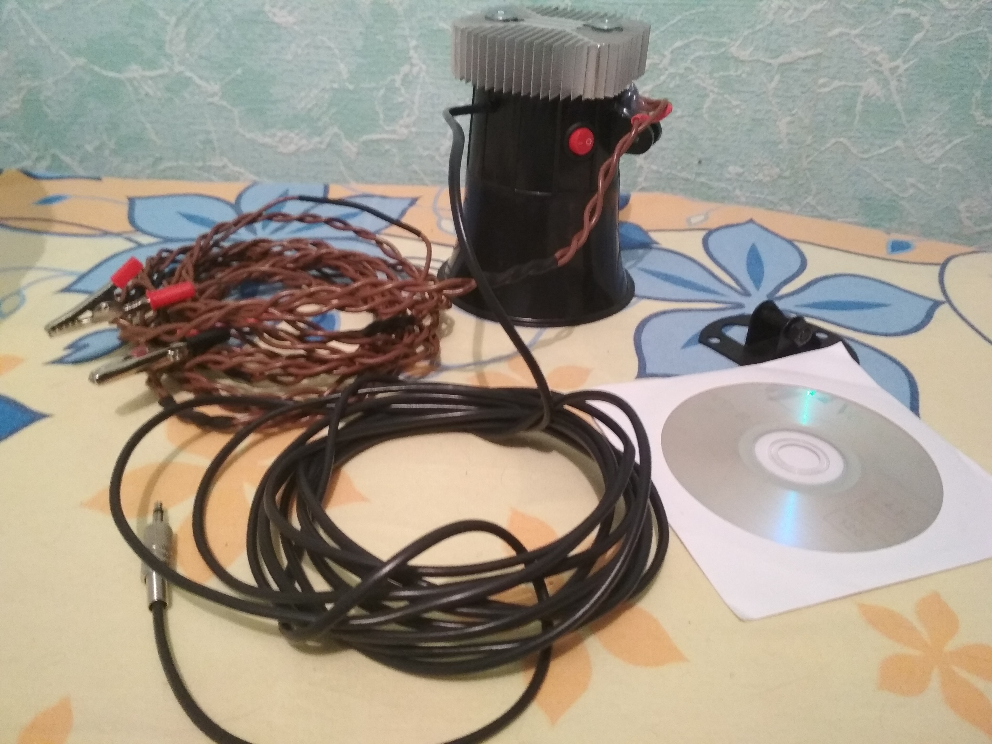 г) провода питания, на концах крокодилы для подключения к аккумулятору, длина 3 метров.