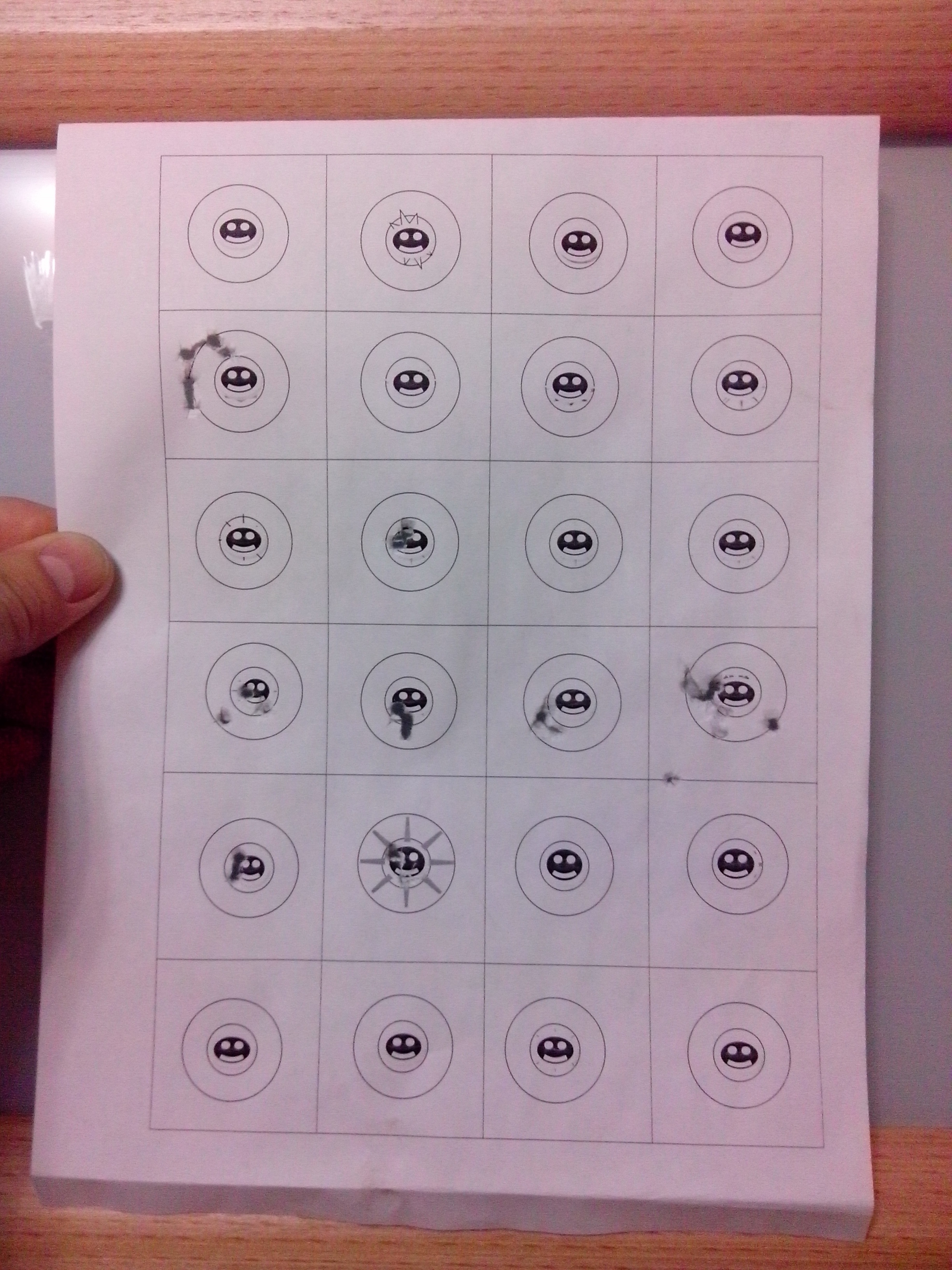 ).Отстрел на быструю руку прилагается, там 3 серии с 7 метров(те, что пуля в пулю, в квартире дальше нет места), 3 с 15 м и 2 с 25 м на улице. Видно один отрыв....и такое бывает.