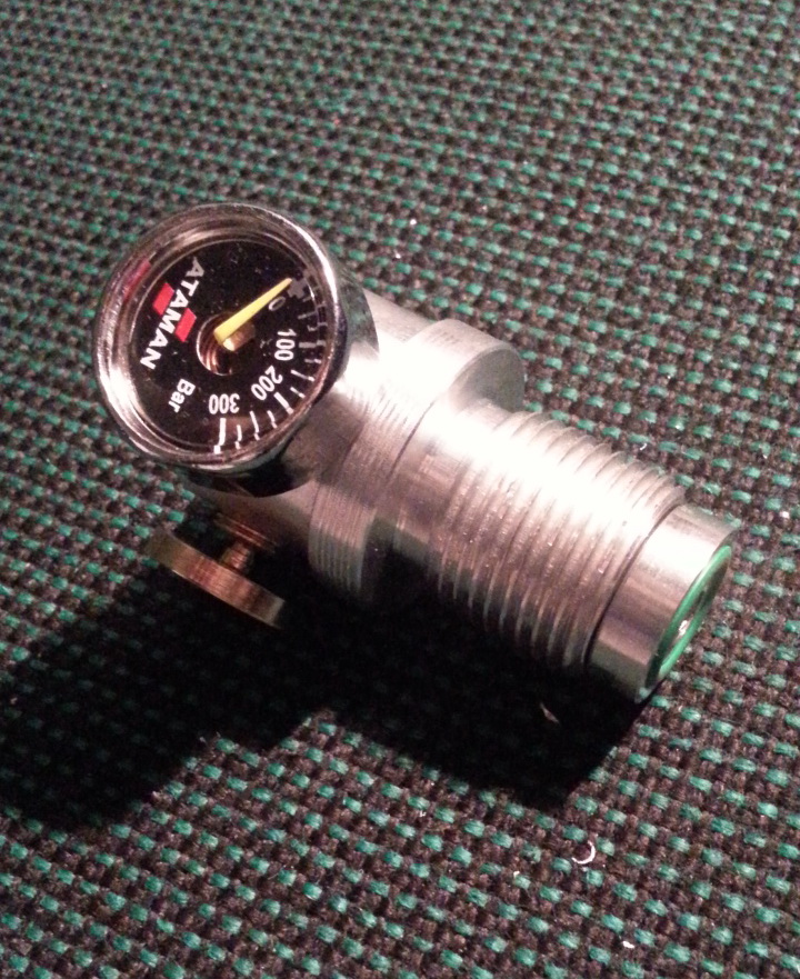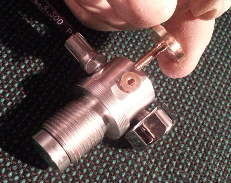 Стравливающий винт очень легкий, сидит в бронзе. Материал корпуса д16Т. В гнездо для вкручивания шланга впрессована полиамидовая шайба, шланг уплотняется по ней - это избавляет от необходимости использования фум-ленты.