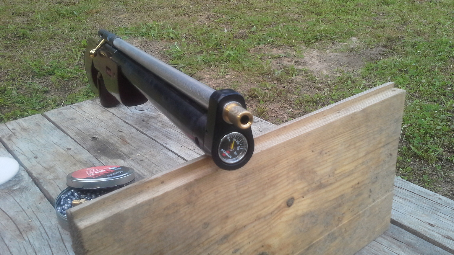 В нагрузку банка пуль (на фото) и заправочный штуцер.