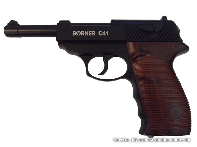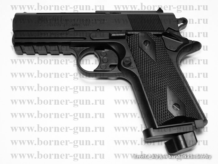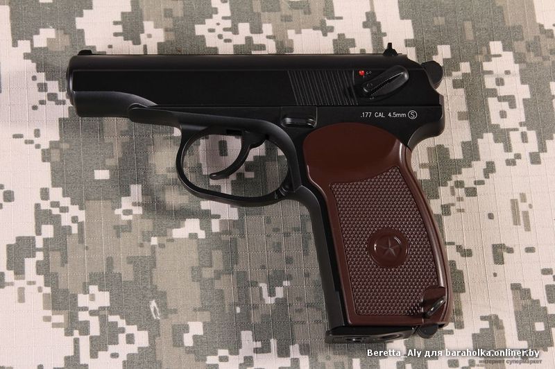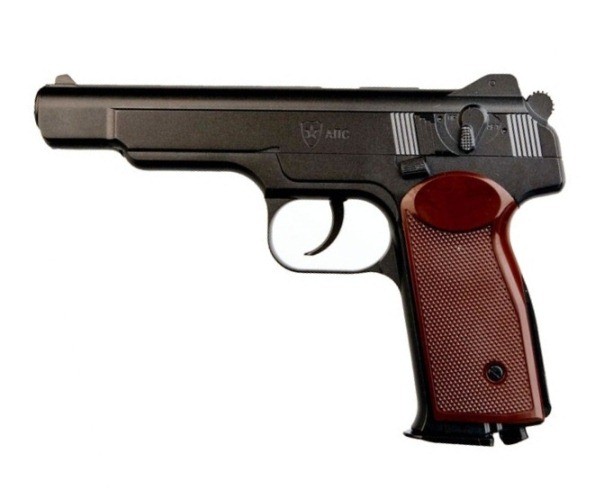 Продукция российского производителя. Газобаллонный пневматический пистолет с барабанным магазином размещенным на линии огня. Просто, не дорогой и надежный, как и вся продукция этого производителя. Данная модель создана исключительно для спортивной развлекательной стрельбы и даже близко не копирует боевого оружия. Сменный баллончик с газом размещается в рукоятке, для доступа к нему необходимо просто отодвинуть назад пластиковую накладку. Весит пистолет 700 гр.