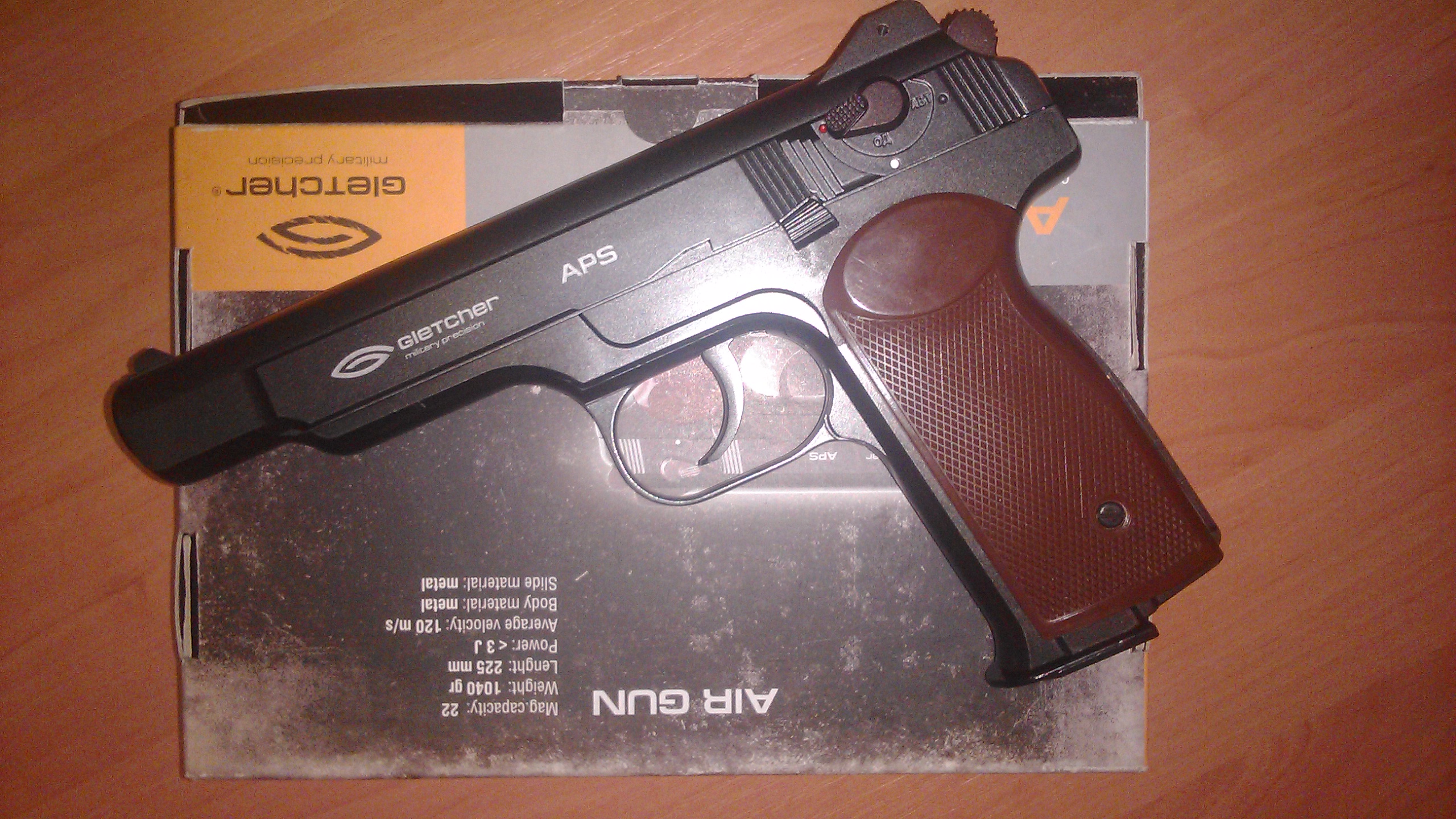Gletcher APS, пневматический вариант АПС (автоматического пистолета Стечкина), состояние практически нового, отстреляно 5 балонов, и почти год в коробке лежал, присутствует Blowback.