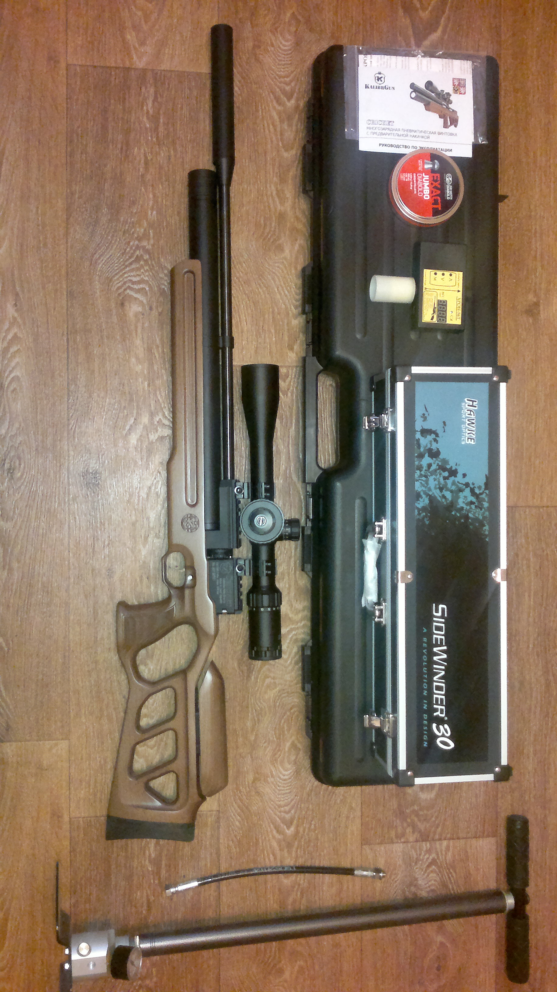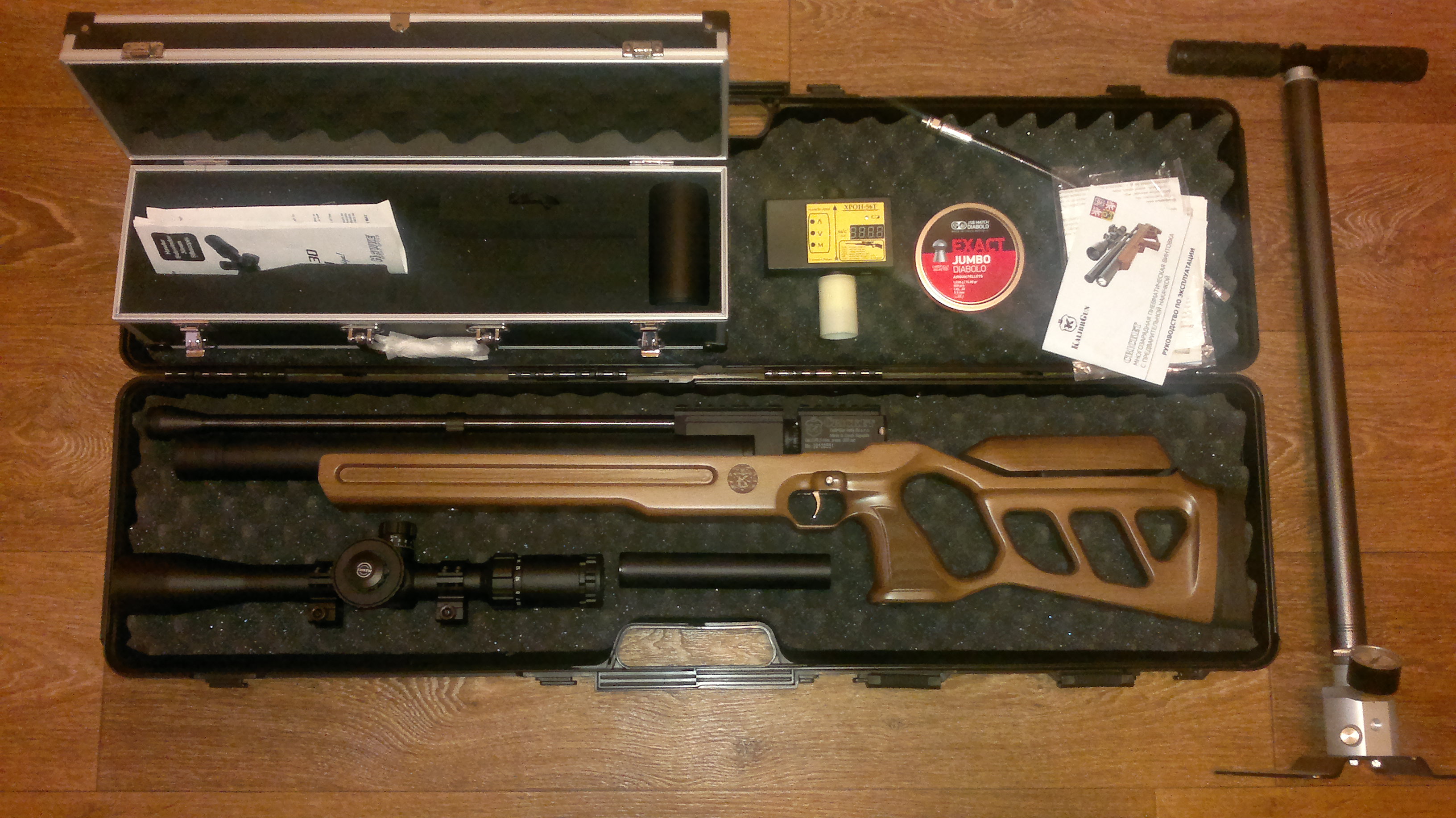 Реально крутой карабин, крутой прицел, крутой чехол, крутой насос, крутой надульный хрон. Все один к одному.