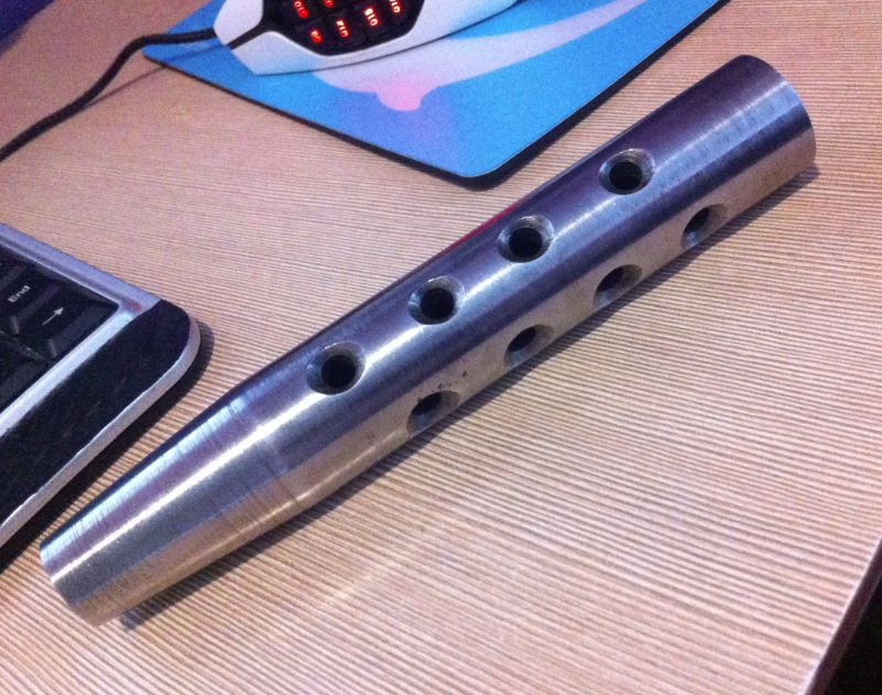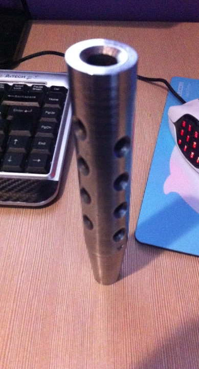 ну дык и я до кучи) надульник -с симметрично расположенными сквозными отверстиями и потайным винтом -из минусов отсутствие воронения и ТОЛЬКО ГОМЕЛЬ цена как у коллег что выше.(диаметр 25мм длина 150мм конус на 110мм диаметр 12мм (ствол спрятан на 10мм) может в чём-то ошибся на пару мм стоял на иж-60