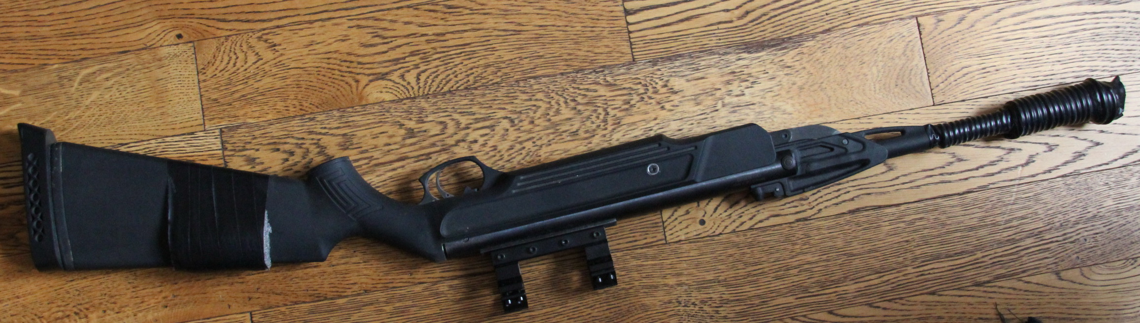 2)Вот эта иммитация "щеки" на прикладе(которая примотана изолентой) выглядит прости,но на коряво.
