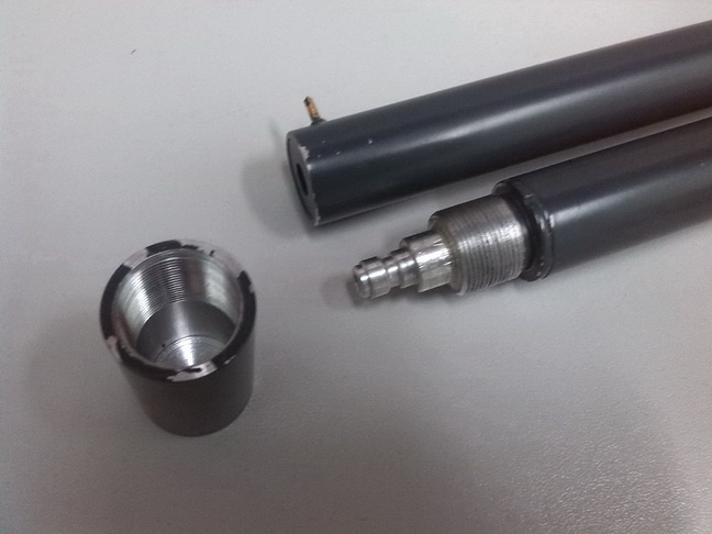 ""Ствол родной 2240, фаска как надо! Модер, скорость 185-178 пулей весом 1 г. 15 пуков, затем на спад( спад не замерял) из апов новая каробка, фаска ствола, уплотнение досылателя в козне, новый перепуск, фальш ствол и модером на 1 камеру . Новый резик из Д 16т, спереди под стаканом на резике заправочный порт Квик. Стоит 2 клапана в кавике под кислоту и под воздух. Новая ручка из ясеня , можно качать воздухом на 100 бар. Или кислотой."