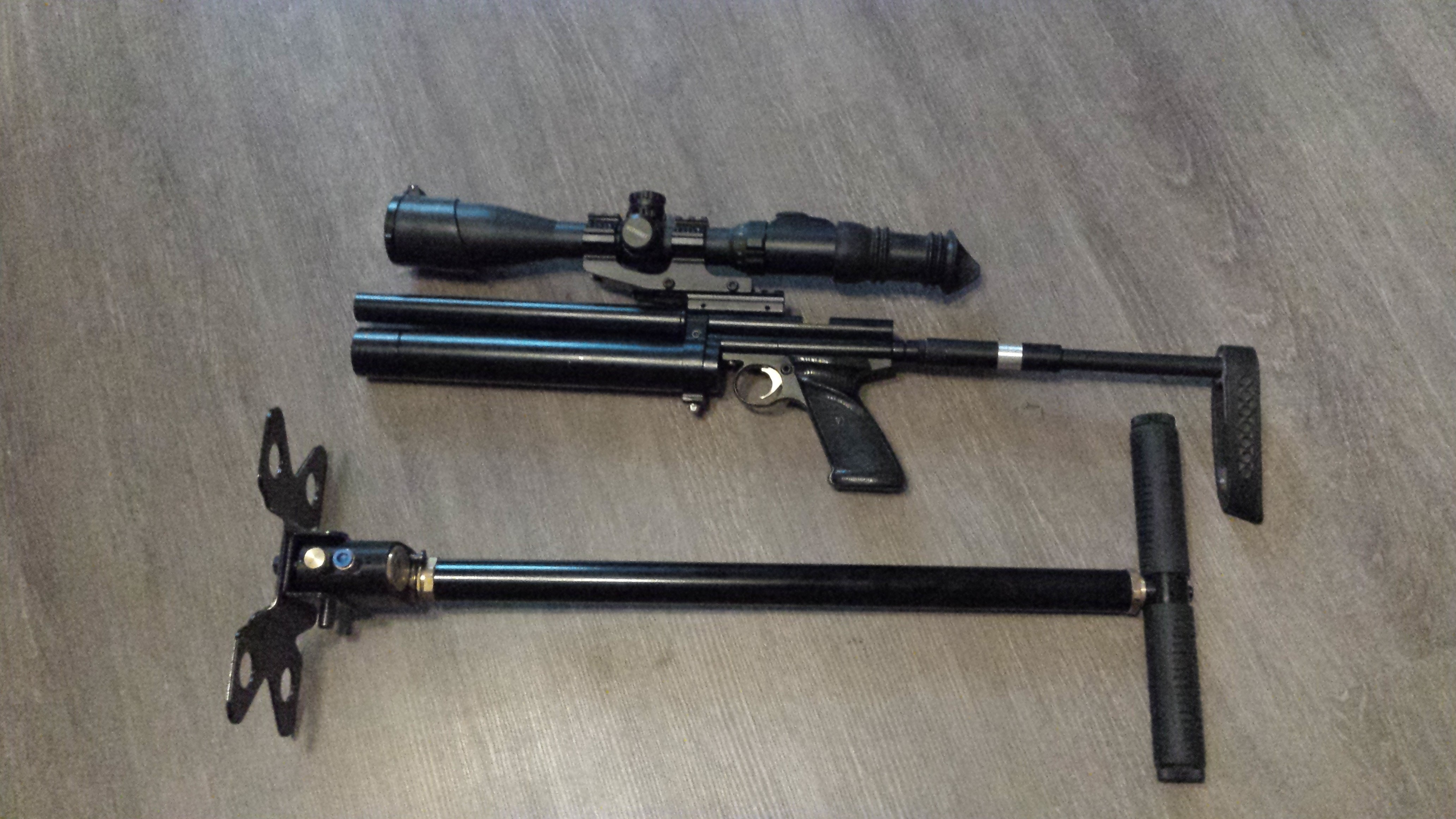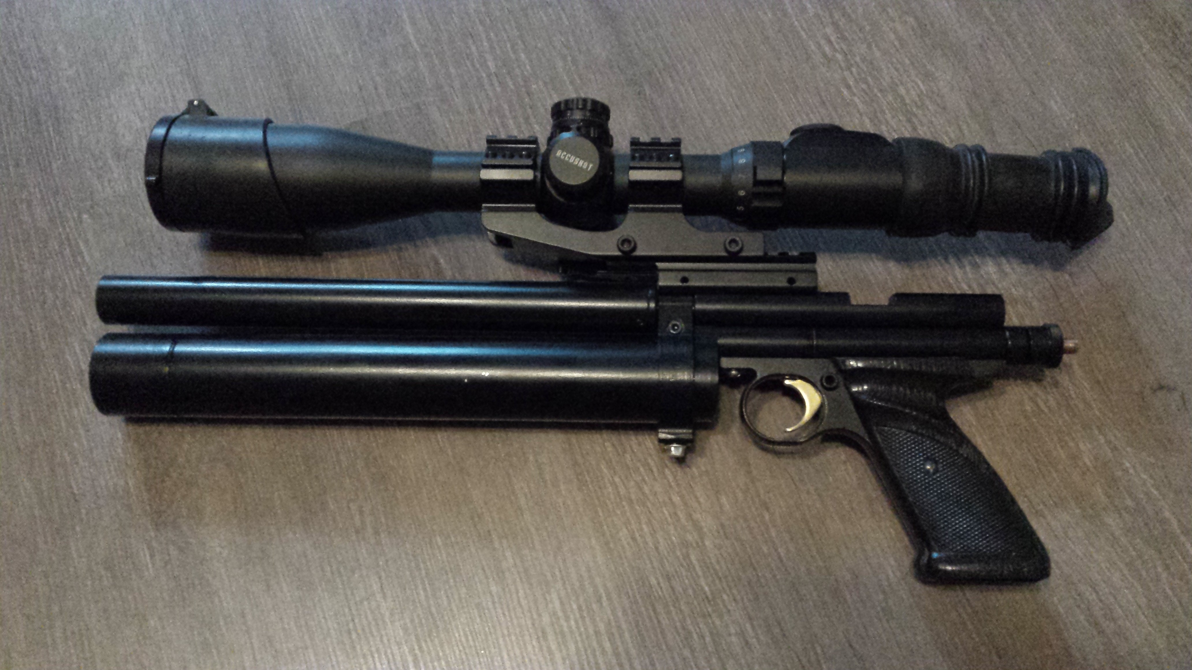 Crosman 1377 PCP 4.5mm + Leapers 3-12X44 + насос Hatsan - все в технически исправном состоянии. длина без приклада 45 см.