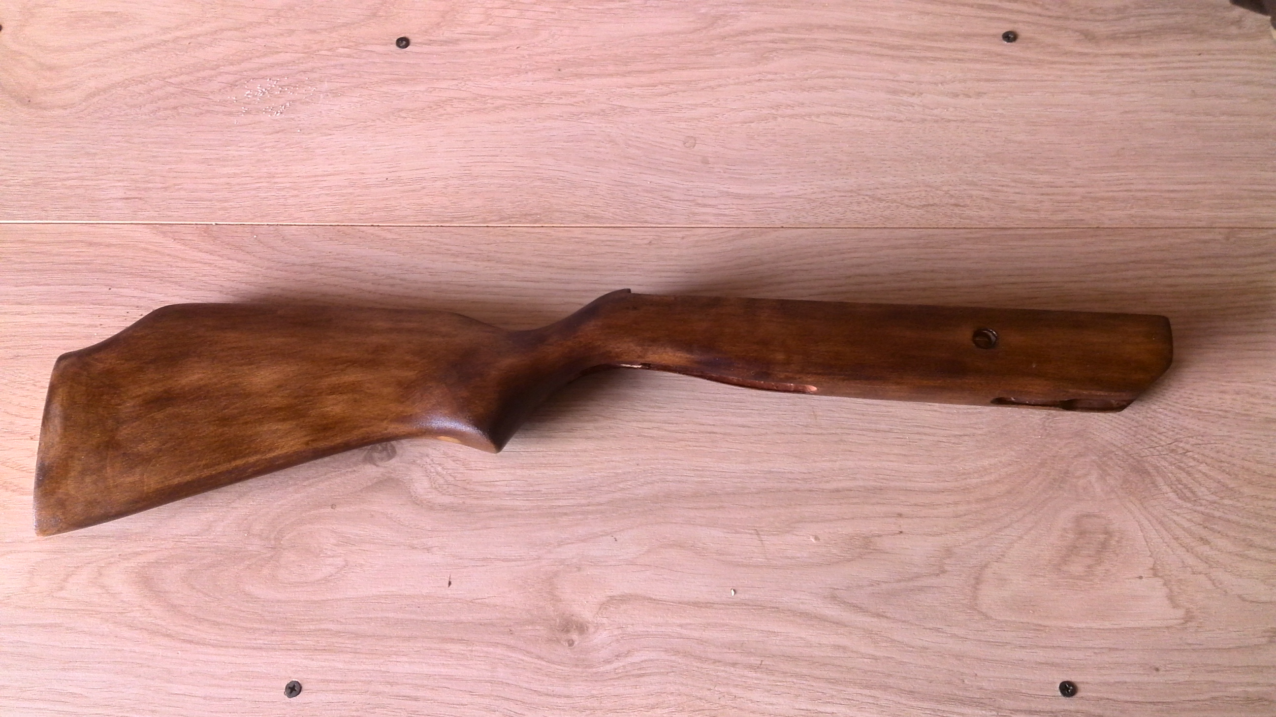 Про ложе.была снята старое покрытие отшкурено и заново покрыто пропиткой и покрашено лаком под цвет Ореха