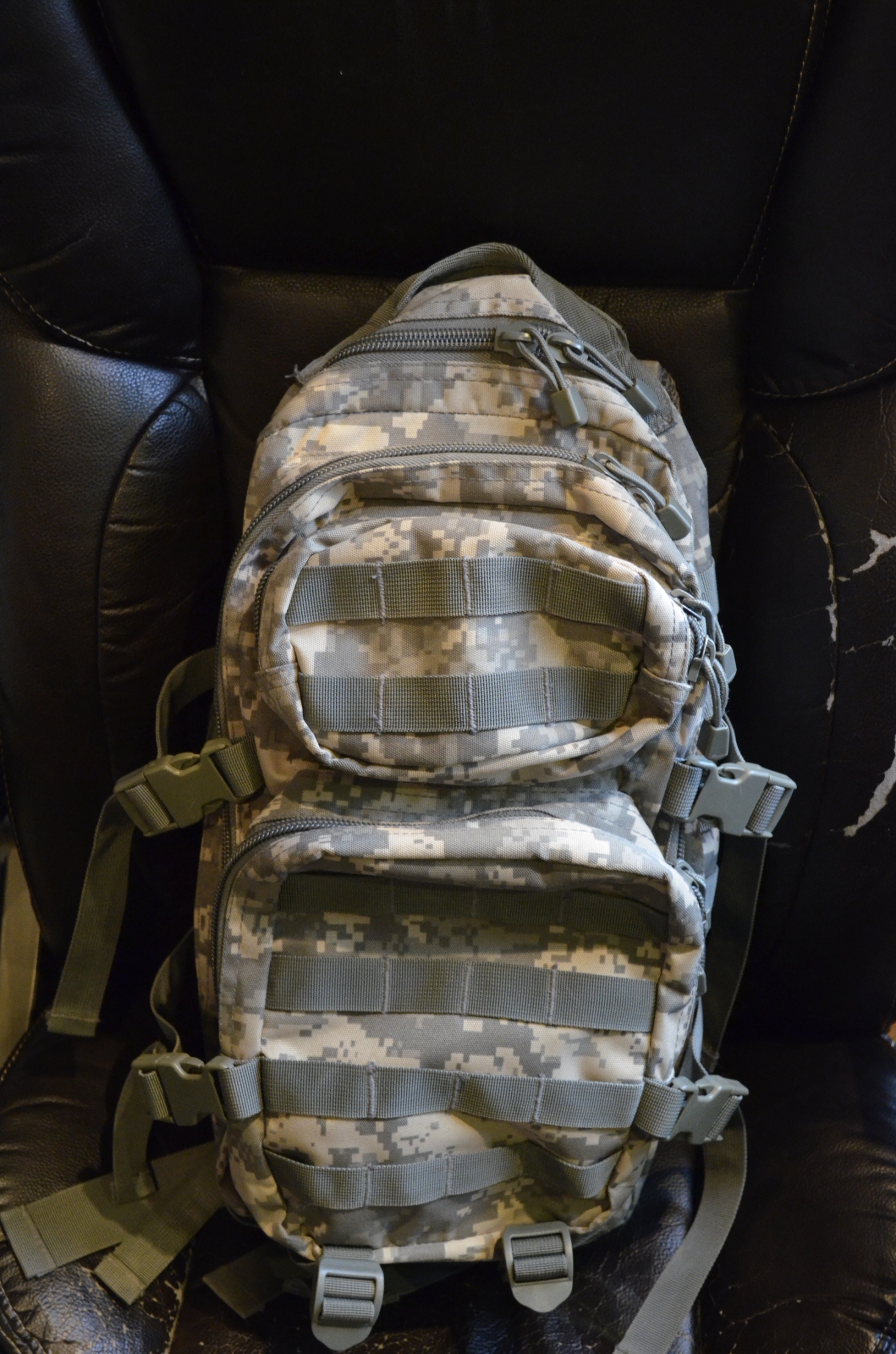 инфа из нета: Данная модель тактического штурмового рюкзака состоит из двух больших отделений с застежками-молниями с различными сетчатыми внутренними карманами, двух маленьких передних карманов, а также встроенного кармана на липучке для гидросистемы. Все отделения закрываются на крепкие двухсторонние молнии. Эргономичные плечевые лямки шириной около 5 см, регулируются по длине. Кроме того, рюкзак оснащен плотной демпферной спинкой с вентиляционной системой и регулируемым поясным ремнем на застежке Fastex. Рюкзак имеет боковую регулировку по объему (в зависимости от загрузки рюкзака), а также стропы MOLLE на внешней стороне для навешивания дополнительных подсумков и D-образные кольца на плечевых лямках.