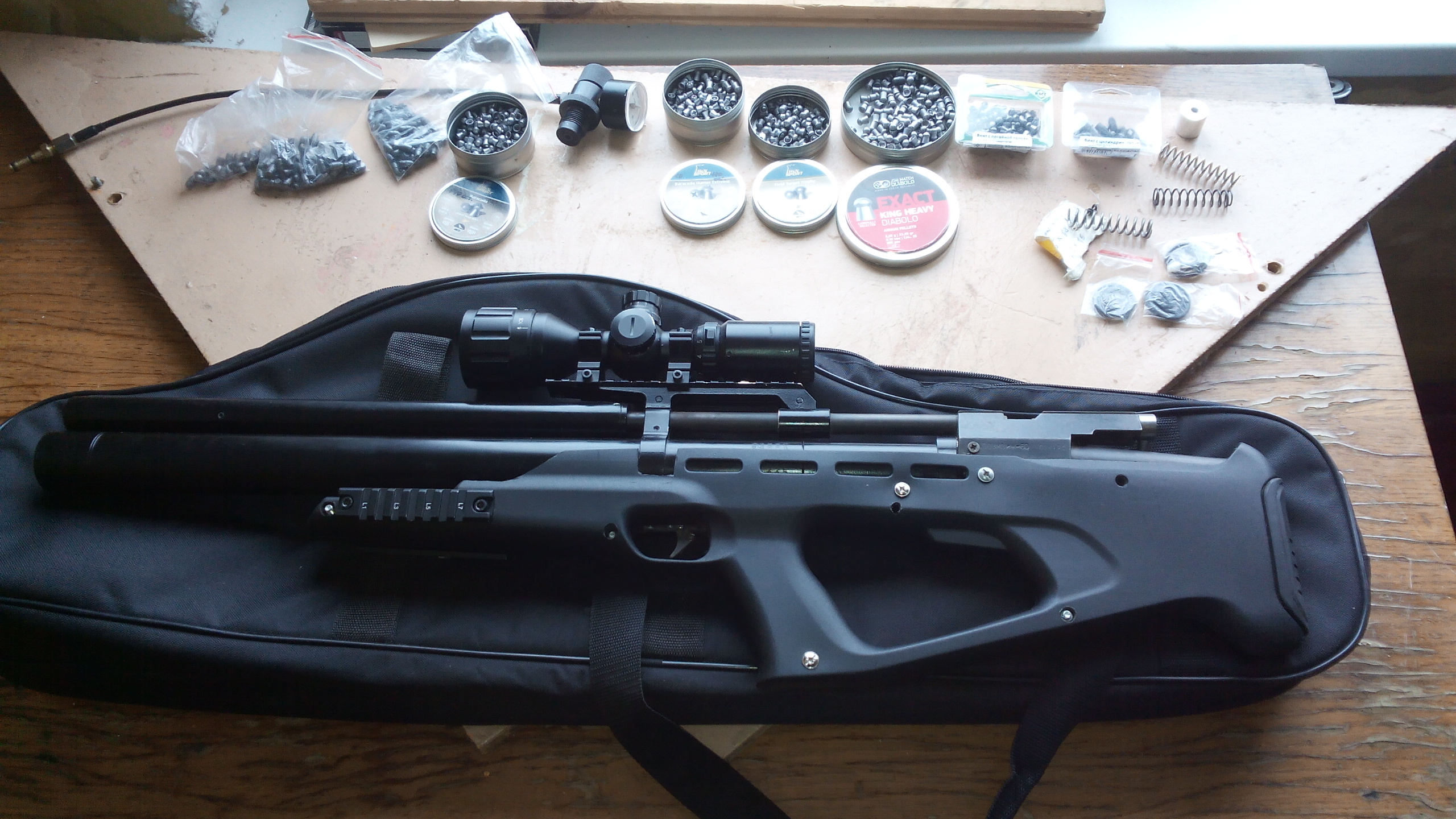 Иж 60 pcp дедушка, кит крюгер 2015 год, покупался в Москве, Редуктор макси, резервуар 510 , досылатель трубчатый. Прицел Китай 3-9*12 крат. с подсветкой, станция заправочная,баллон Вд 6,8 литра с вентелем (рабочее 300 атм., проверочное 450 атм.), хрон, чехол. штук 250 прессованных пуль хамера, и штук 400 заводских баракуда, 250 жсб 2.2 в вперемешку+ небольшой рем. комплект. Прошу 570 единиц. если сразу заберем поторгуемся.