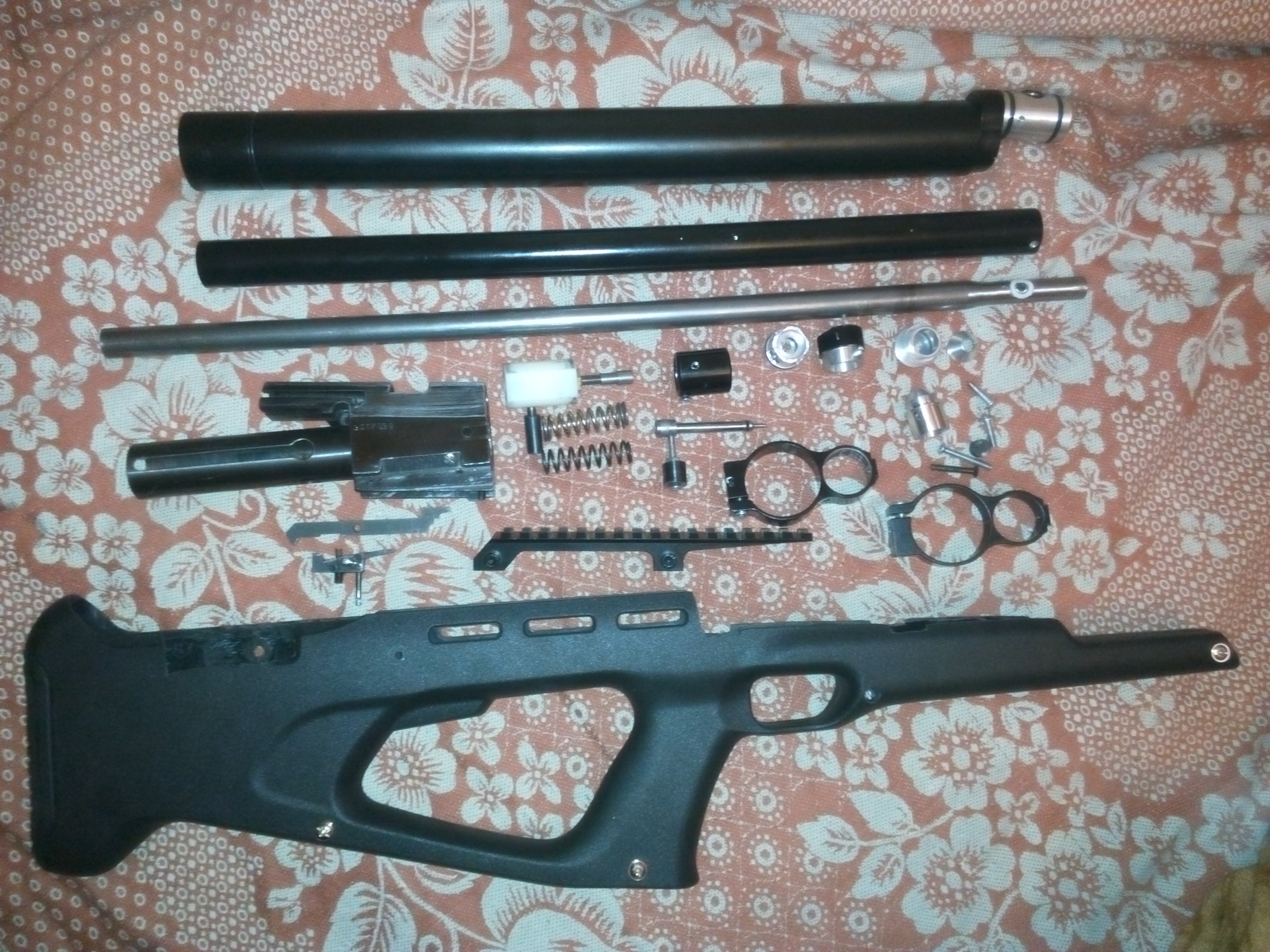 1. Коробка иж-60, с усм, пиленый компрессор, на нем сверху отверстия АБ, фиксация дудки на 3 гужена м4. Два досыла на 4,5 и самодельный папский из гвоздя, докину к ним резиночек, подходят под оба калибра. Перепуск в коробке 4,5мм. Цена - 1 000 000