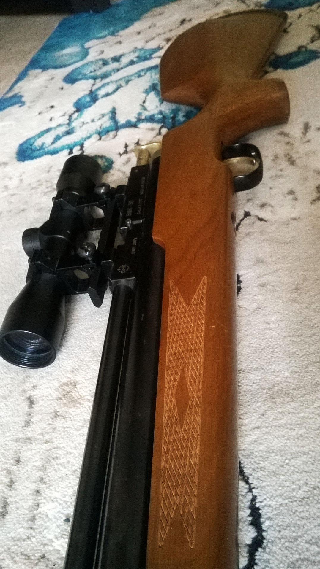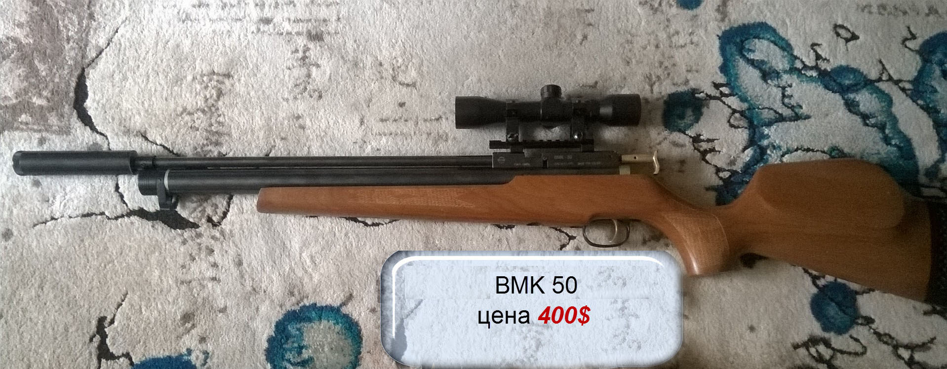 Цена на фото. Обсуждаем спрашиваем не стесняемся. Продается в режиме до 3 Дж, . BMK-50 (в народе БАМ 50) редукторный классический вариант. Брал ее уже редукторную 2 года назад у человека здесь Cсылка скрыта. Для просмотра необходима регистрация на форуме или войдите на форум. за 2 года ничего не изменилось. При т.о. заменил все резинки, не травит, давление держит даже зимою, редуктор как на сверчке, клапан сделан конусный, достаточно большой. Редуктор можно просто достать и вставить проставку простую и будет прямоток, однако я не считаю что так нужно делать. По скоростям может кросман 0,87 – 290 мысов давление от 160 количество выстрелов не считал но как и в описании около 40, облегчен ударник, сточен носик досылателя, УСМ, просто сказка, очень легко и нежно работает, идеальная фаска. Состояние просто хорошее, насечки не затерты, только пару царапин. Кучность как и у прежнего владельца при настройке, 1.5- 2 см. на 50 м. Комплект:винт без прицела (прицел постоянник 4х32 Bushnell не продается), квик для заправки, манометра нету на резике.