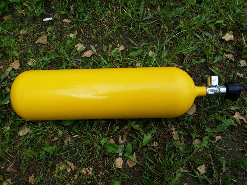 Опрессован два месяца назад до 2019года. В очень хорошем состоянии, вентиль мягкий - Драгер, заправлен на 300атм.