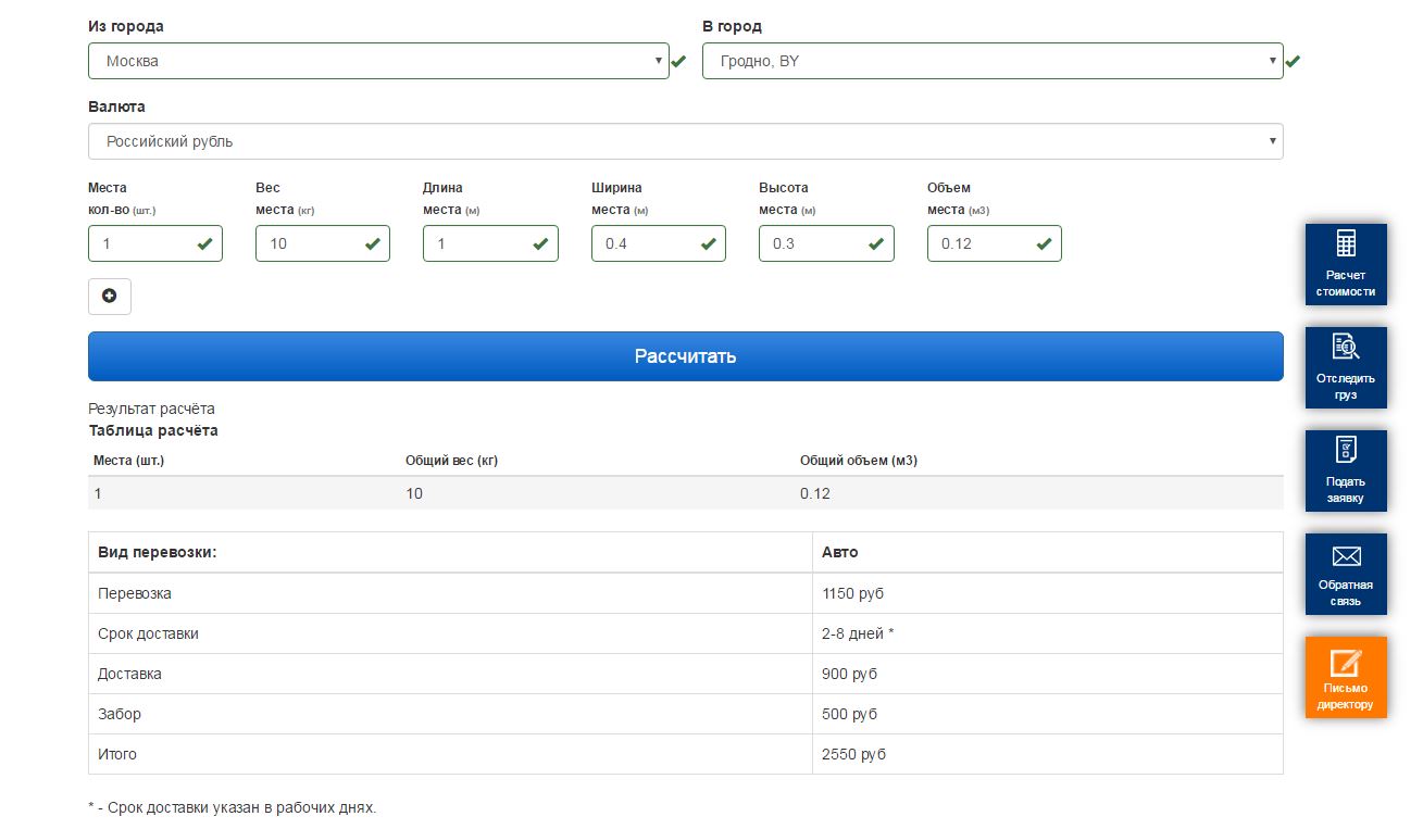 10кг из москвы 1мХ0,4мХ0,3м = 780 рар