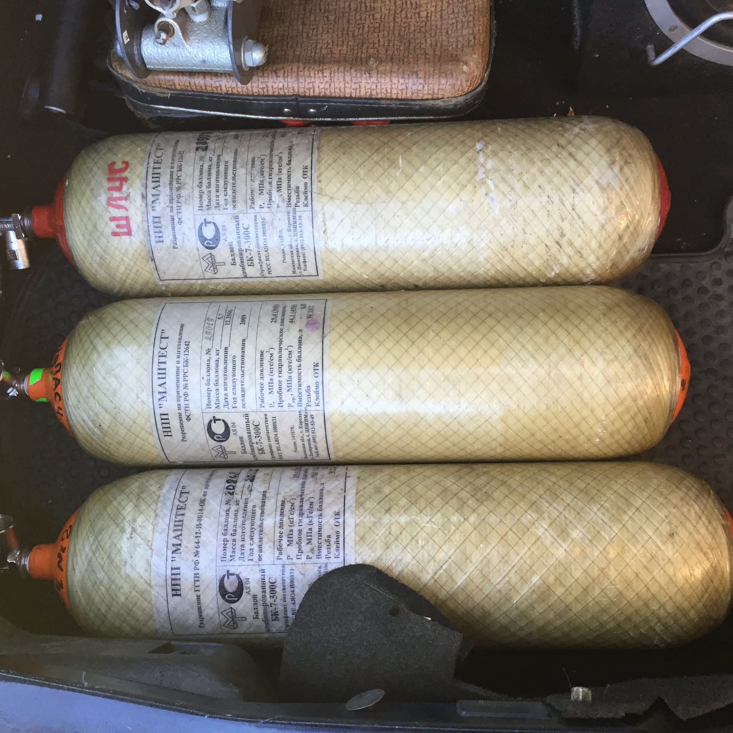 Собственно имеется 3 МК баллона с новыми мягкими вентилями и 1 стальной.