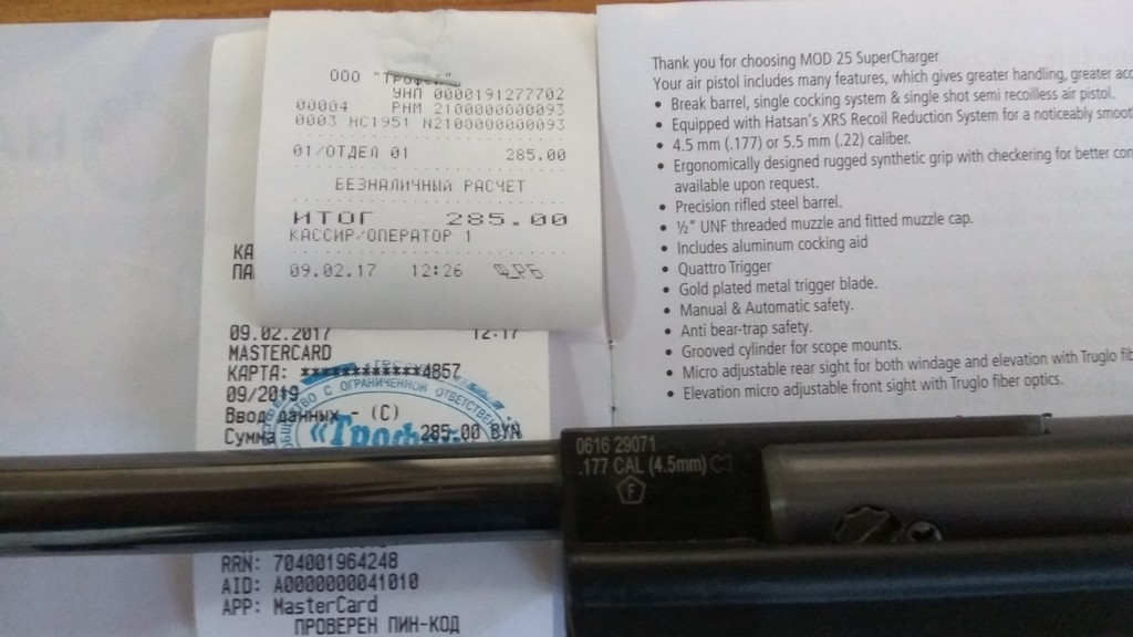 Re: Пневматический пистолет Hatsan MOD 25 Supercharger 4.5