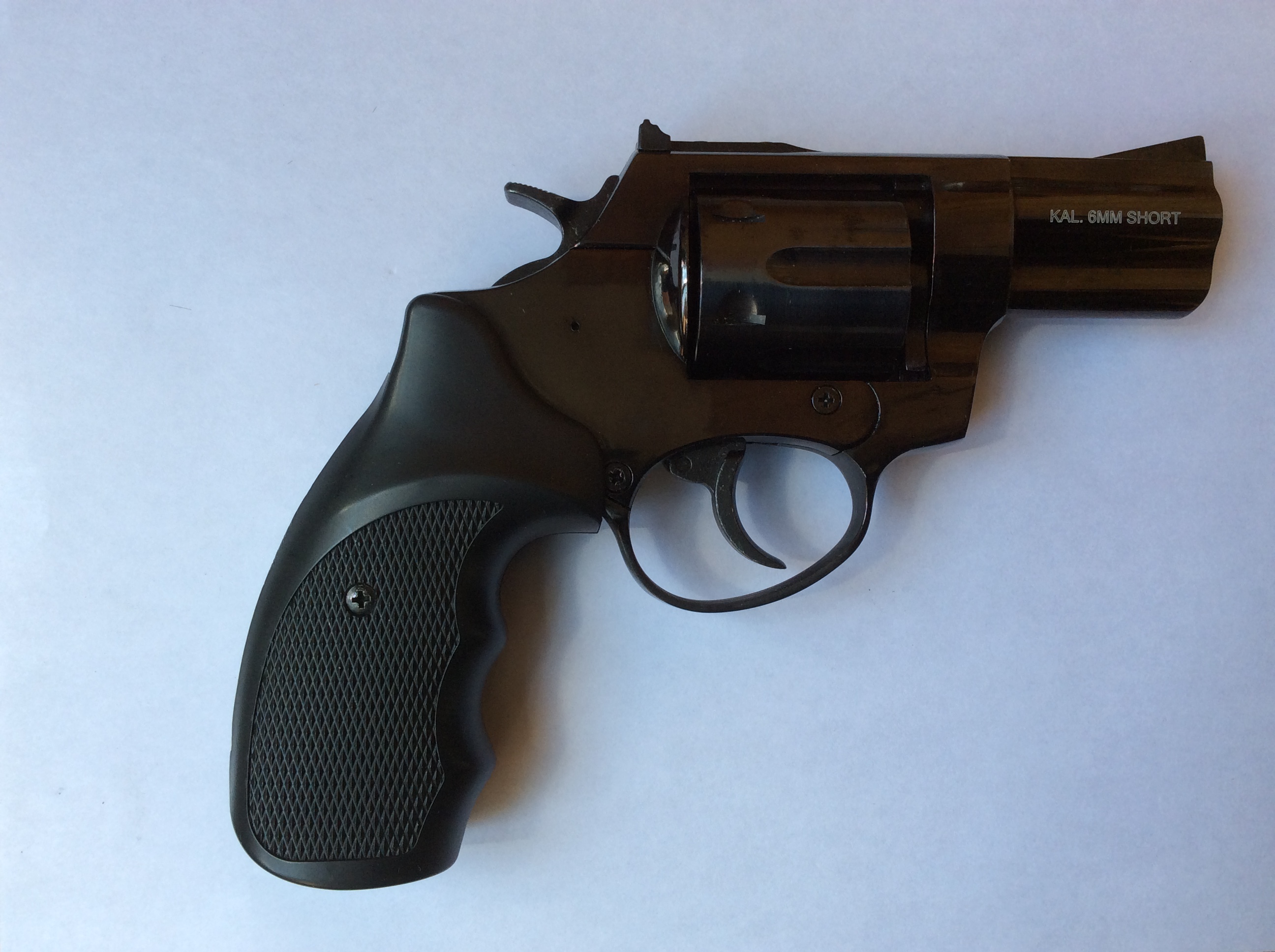 Калибр 6 мм, шестизарядный. УСМ двойного действия.
