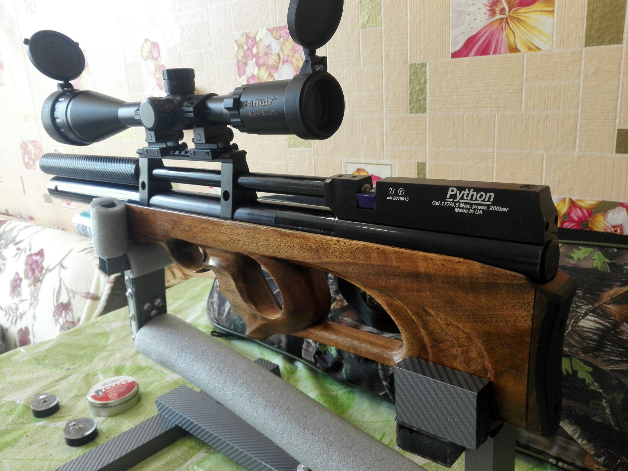 Продам пневматическую винтовку Python, калибр 4.5, дудка лв, редуктор, модер+допмодер- (тока пук), с 250ти до 120ти примерно 70+шлепков!