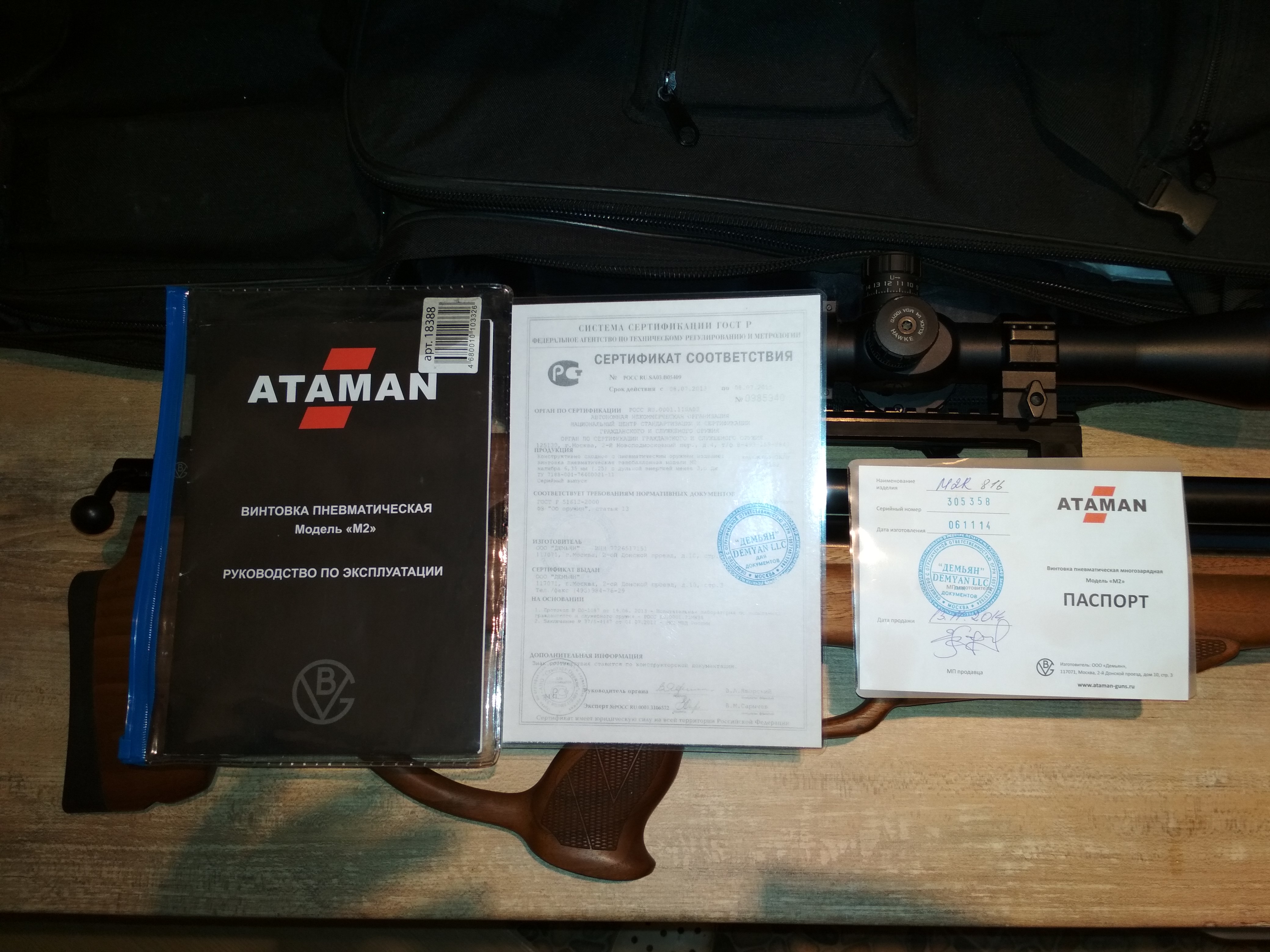 paulin1945 писал(а):Продам мощный и точный аппарат может 3.05м.с 1.65 гр и 2.85 м.с. 2.2 гр. Все в стоке ничего не течёт , куплен новым в 2015 году с тех пор в одних руках . Так же возможно с прицелом Хавк 10-42 постоянник ( 600 рублей) и баллон 10 литров с чехлом ( 250р) Винтовка 1950 рублей + тактический чехол в падарок . Сертификат 3 Дж и всё документы