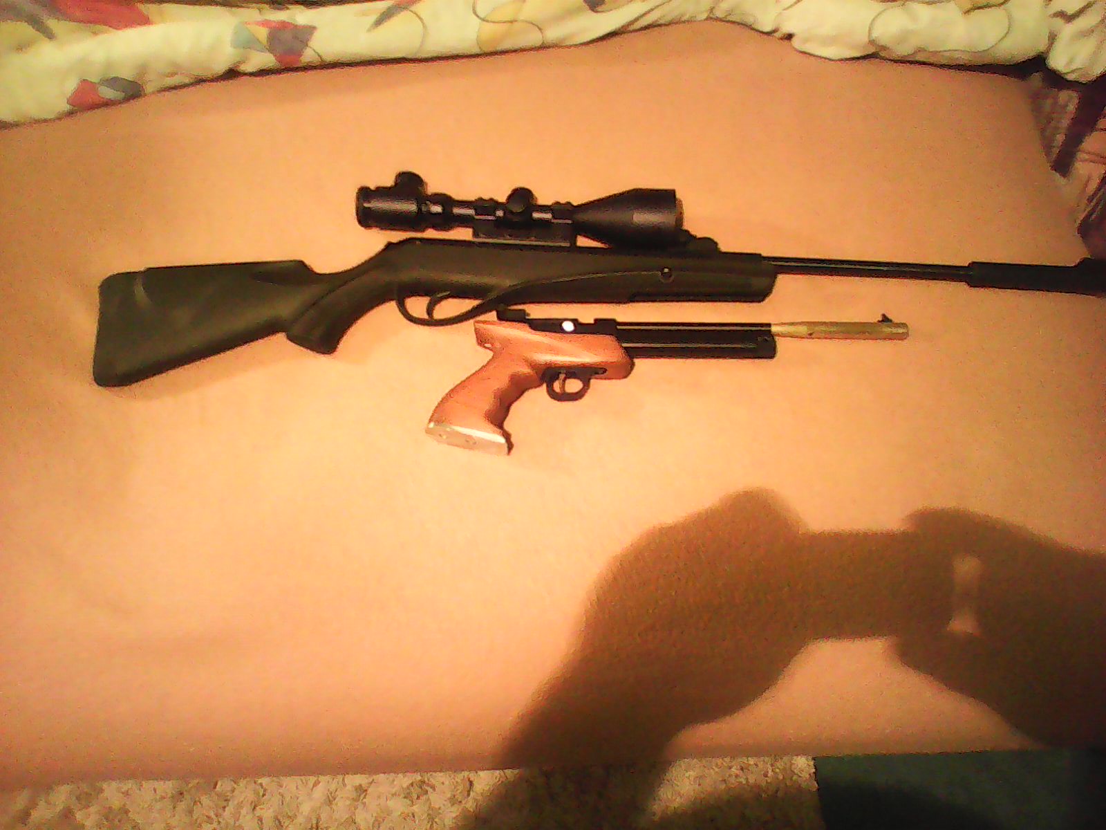 Вы пробовали из его стрелять, значит знаете надо кисть сжимающую рукоятку опустить вниз чтобы увидеть мушку, с моей рукояткой и утяжелителем этого делать не надо, утяжелитель сам за щет веса опускает кисть.