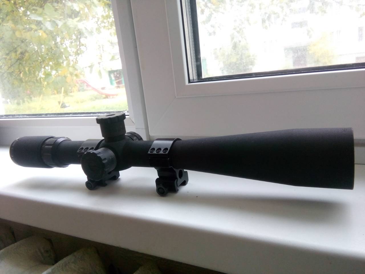 Маленький нюанс, в процессе замены сетки на нижнюю часть линзы попали то ли ворсинки, то ли были мелкие потертости на линзе, непонятно. Мне абсолютно не мешало, поэтому не исправлял. Фоткал на телефон, лучшего качества добиться не смог.
