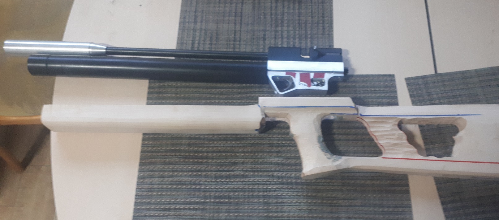 дудка около 40см китай(стояла на другом девайсе, довольно кучно летели пульки), усм по боливару. Осталось настроить и доделать приклад. По цене 600 белор. рублей.