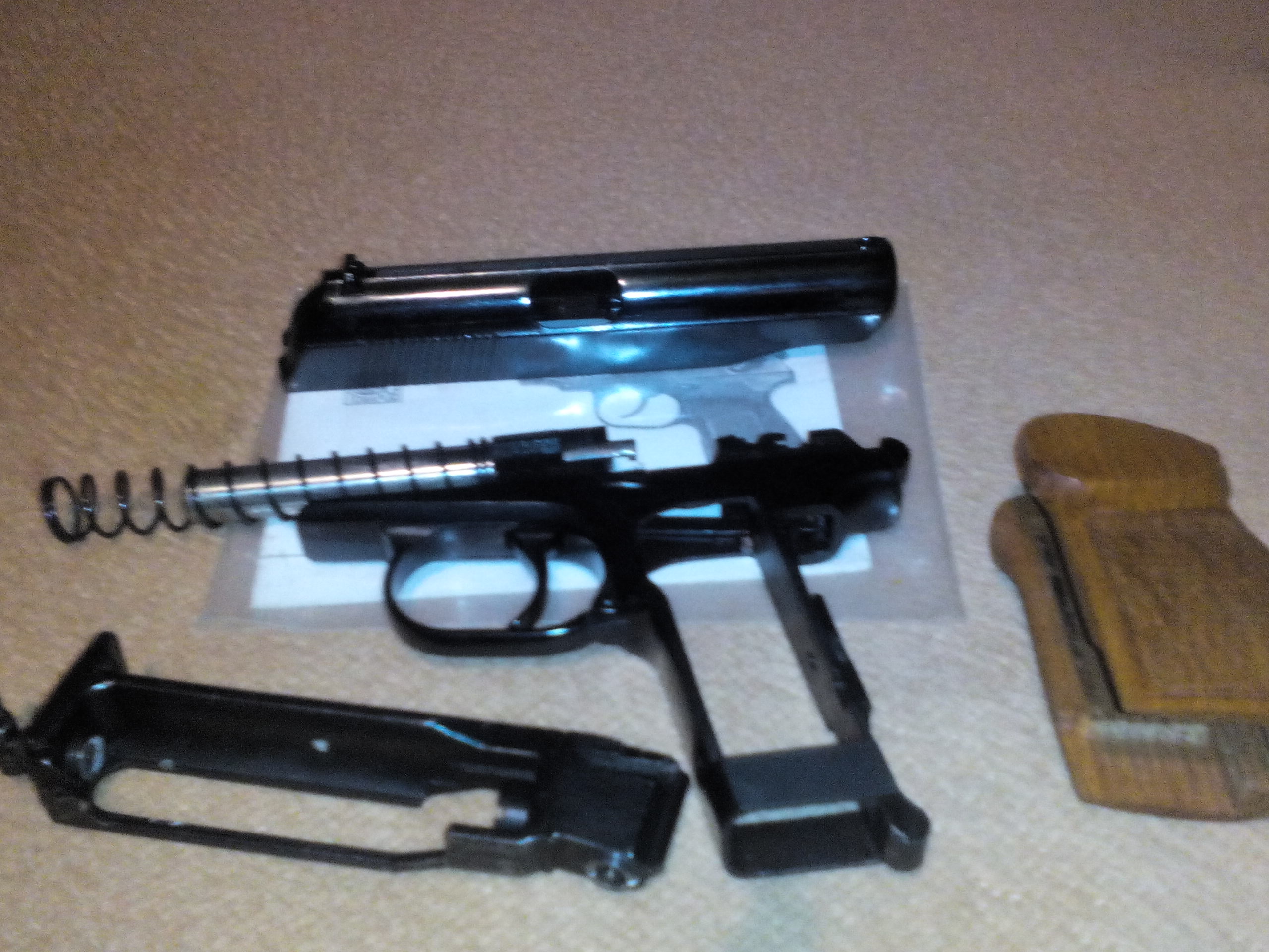 Продам МР654К20 в разных модефикациях, т.е возможны несколько вариантов затвора и рукояток.Переворонен (ВОРОНИЛ ФАТОН) , воронение черное равномерное , по сравнению с заводским очень красивое и гладкое.В стволе резьба 10ш1 для мартирки , для запуска ракет и удлинителя ствола.Рамка фигурная. Один из затворов редкий с овальной задней частью (КАК У ПММ) иширокой антибликовой полосой. ЦЕНА В ЗАВИСИМОСТИ ОТ ЗАТВОРА (от180 до 220р) . Возможен торг и пересыл. Находится в Сморгони.