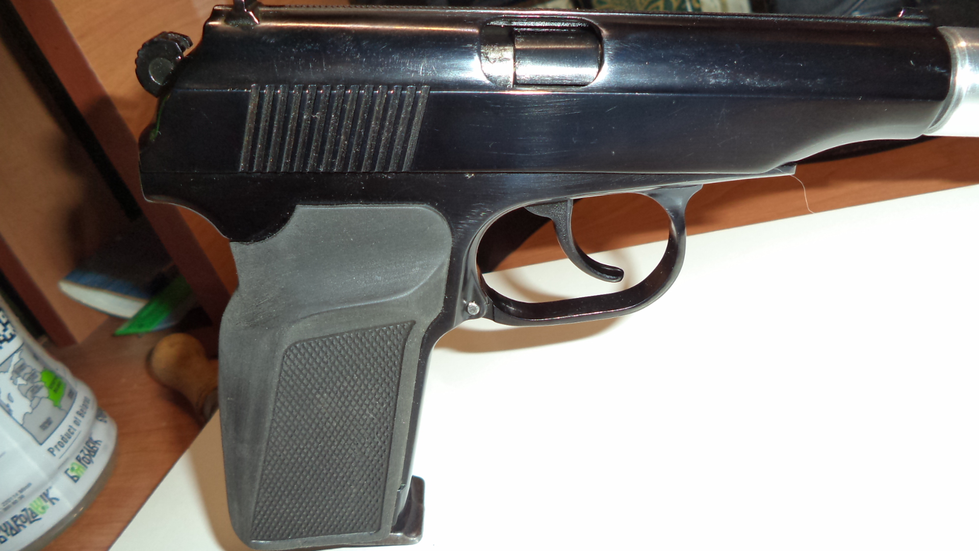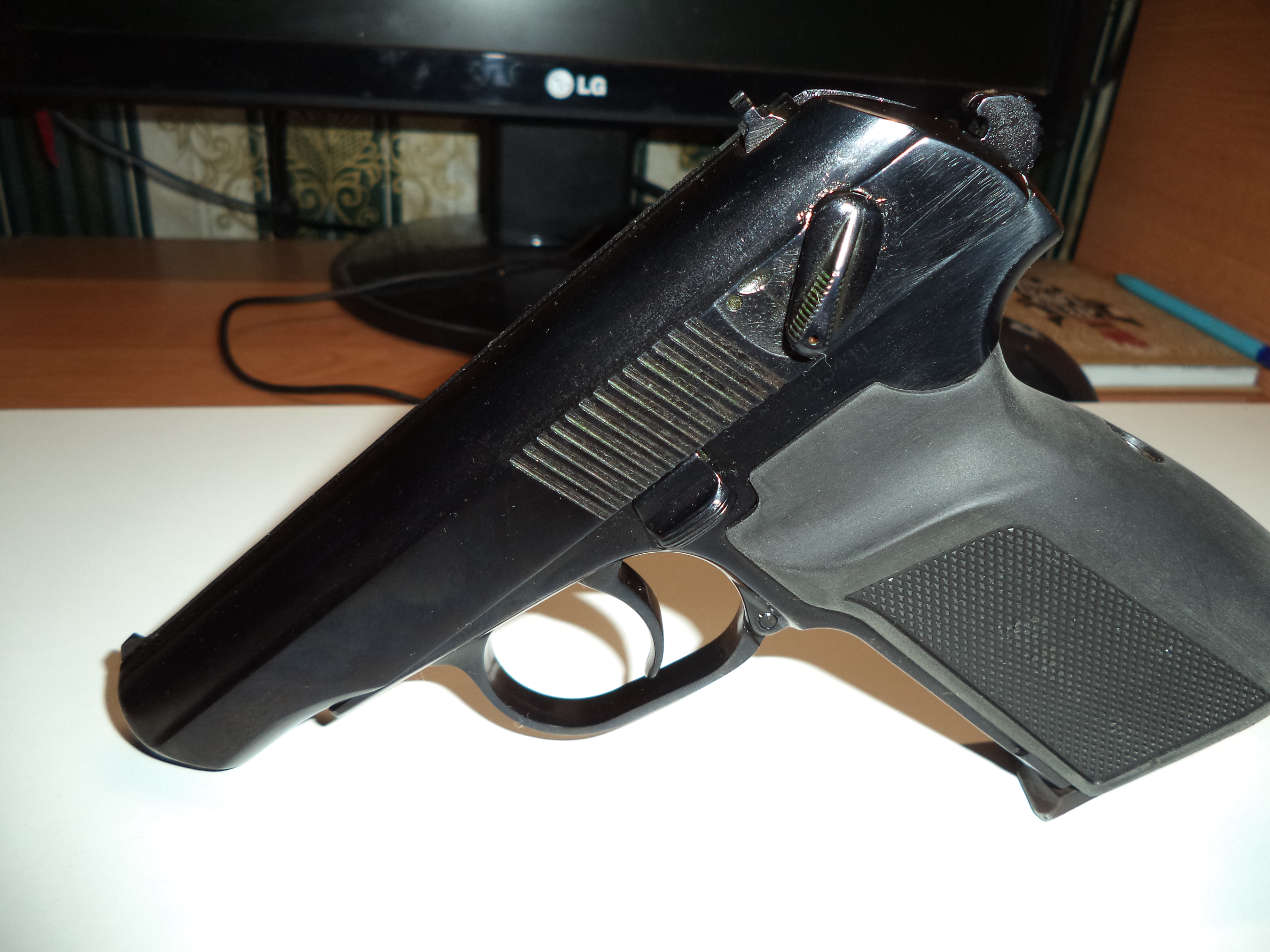 А на второй сверху,фотке,на среднем пистолете,рукоять похожа на заводскую бакелитовую,но чёрная, это пластик,новодельный, или редкая с боевого,(была такая,именно чёрная)???