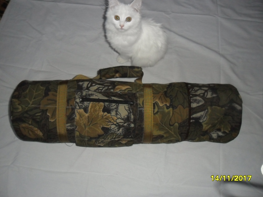 Сшит и готов к отправке вот такой чехол. Длинна 68 см, ширина стенок 18 см, толщина уплотнения 15 мм. Сделаны жёсткие вставки в низ и вверх чехла. При переноске баллона чехол не меняет свою форму.Есть карман для ЗС. В чехле есть дополнительные уплотнения в углах для более надёжной фиксации баллона. Цена квадратного чехла 40 руб. Купившему этот чехол пересыл бесплатный. Также есть возможность пошива в черном цвете круглых чехлов и чехлов на винтовки. Цена не меняется.