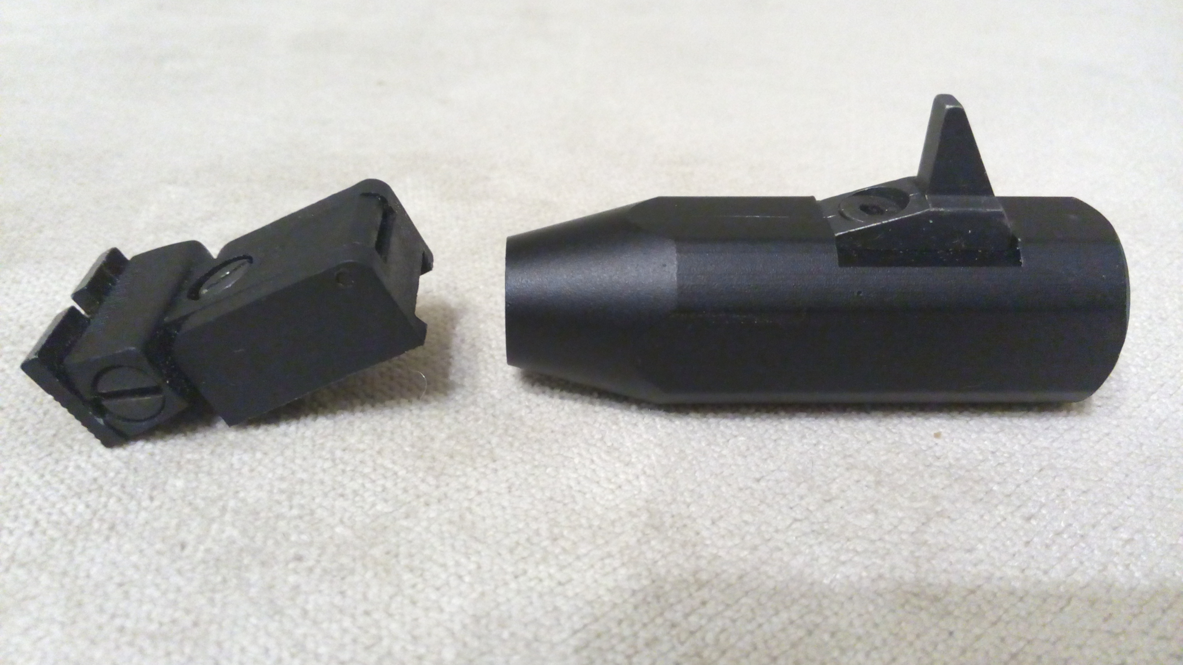 целик -довольно качественный пластик, с горизонтальной и вертикальной регулировками. а вот надульник из дюралю