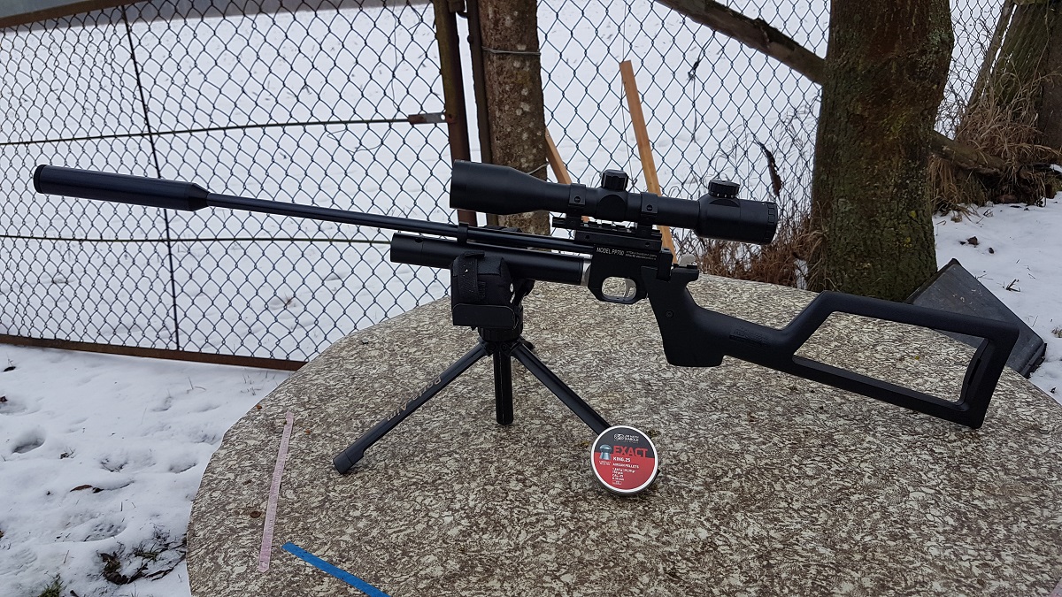 Тот самый. Многим тут он известен. Редуктор есть, с внешней регулировкой. Стволик натянут. С модером длинноват - 48 см. Зато пальцы целы будут) Эксцентрик нужно делать - если размер не устраивает или маленький доп с РК, или модер d=20мм (больше не влезет) с поролоновым клапаном.