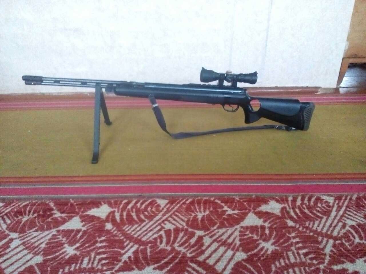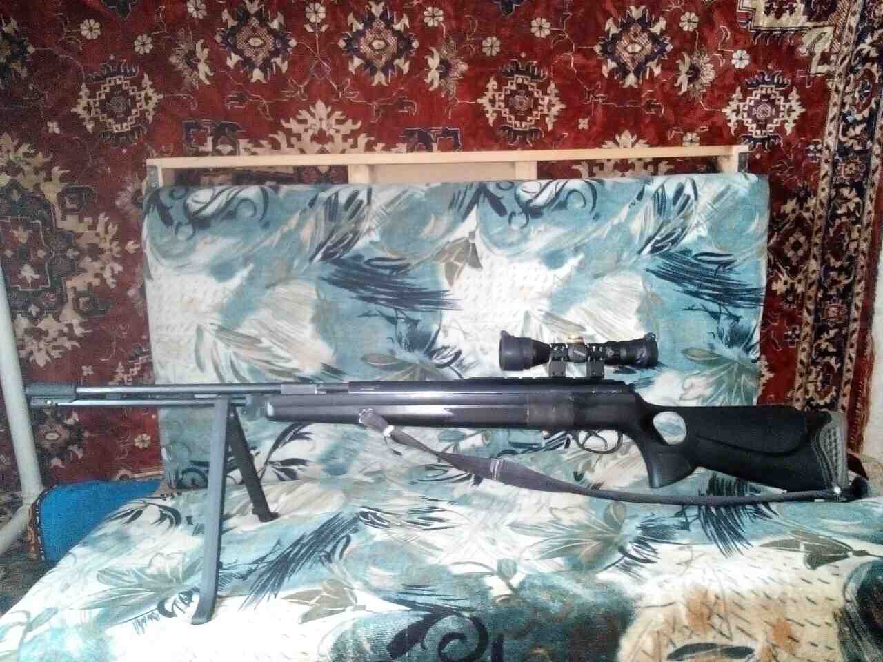 привет всем.чегопродаю? сломал руку, а взводить проблема. стоит газовая пружина 180. приклад усилен, ложе проклеено пластиком изнутри. сам приклад залит бокситкой.даа с правой стороны была маленькая трещинка. приклеел накладку,резину, чтобы нетерлось о пристрелочный,ствол ходит в ствле на бронзовых втулкках.сделна фаска.прицел есть и лучше.