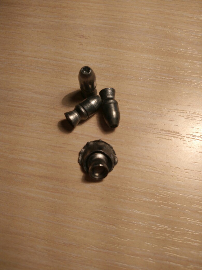 Пули 6.35 мм , 3.6 гр. , составные, обладают отличной экспансивностью и шоковым эффектом, спаиваю специальным крепким материалом, при спайке проходят через канал в котором обжимаются, что исправляет заводские неровности, кусают ооочень больно))