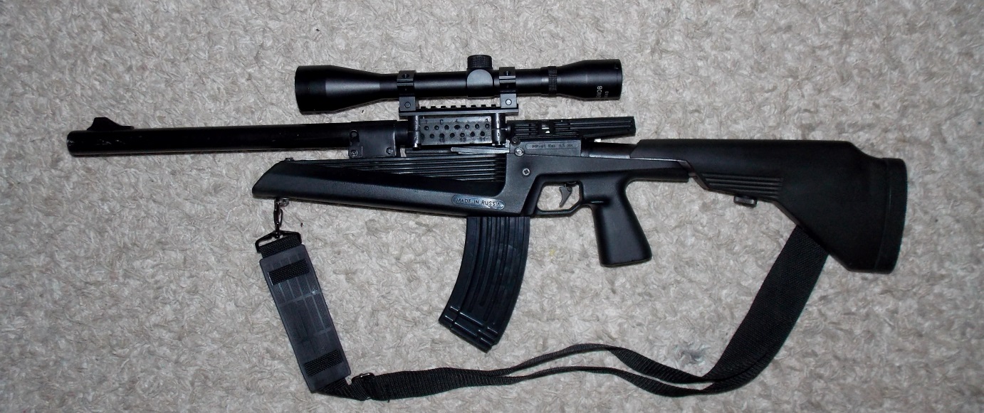 Пятизарядный Мр-61. Состояние железа и пластика идеал. Оптика в комплекте 4х40. Закреплена жестко на стволе через кольца на планке Вивер. Три магазина. Досылатель уплотнен. Усилена пробка цилиндра, чтоб не разбивало "уши" цилиндра. Есть антабки. Задник металл. Пружина витая. Без ремня.