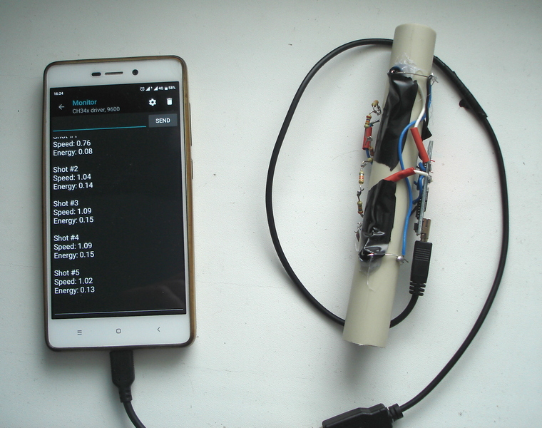 Вывод номера выстрела, скорости и энергии на экран телефона