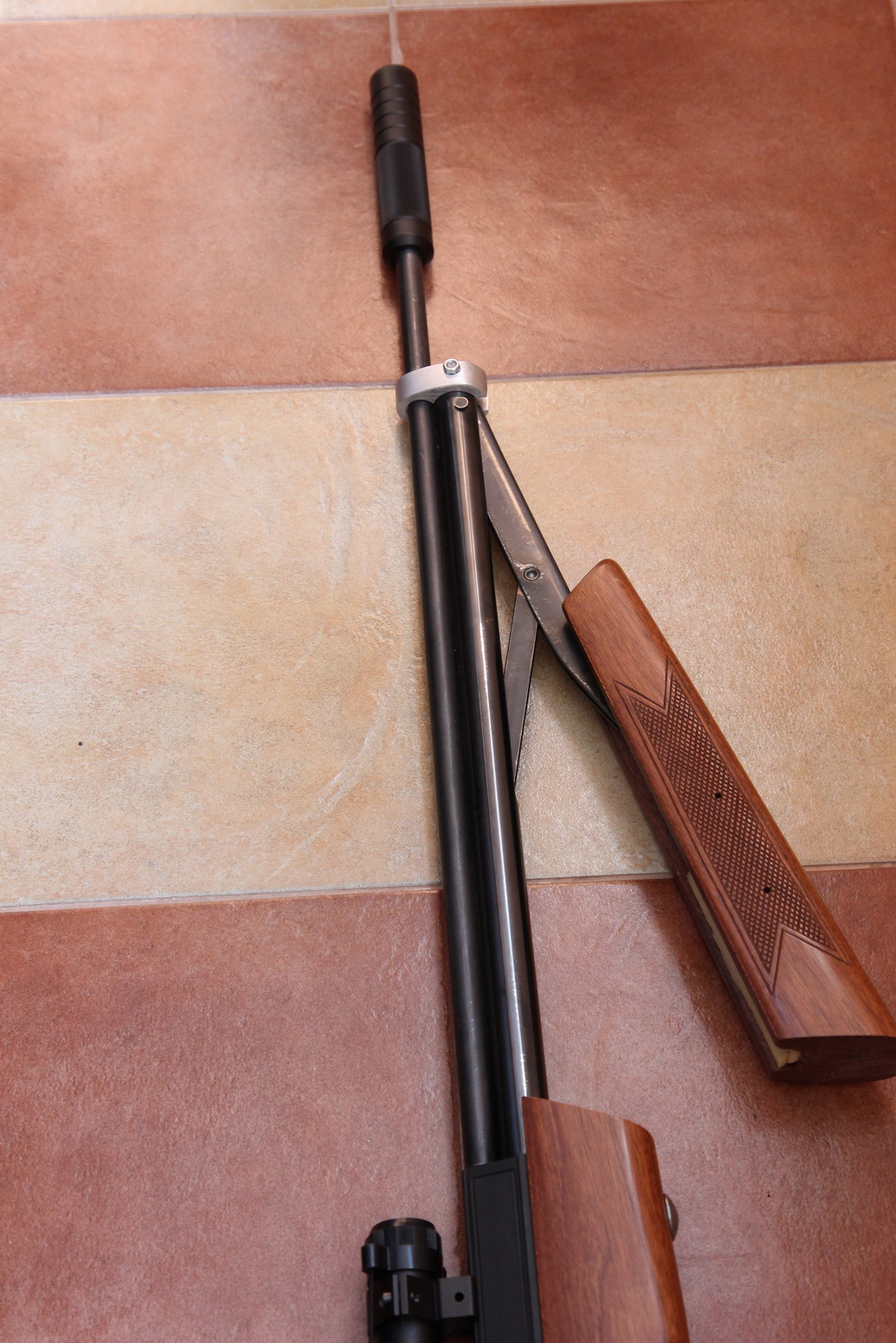 Предыдущим рукастым владельцем сделан ап всего, что только можно: алюминиевая восьмерка, металлическая передняя пробка, ствольная коробка-капролоновая, закреплена болтом, оси и втулки рычага накачки закалены, фаска, удлиненный досылатель.
