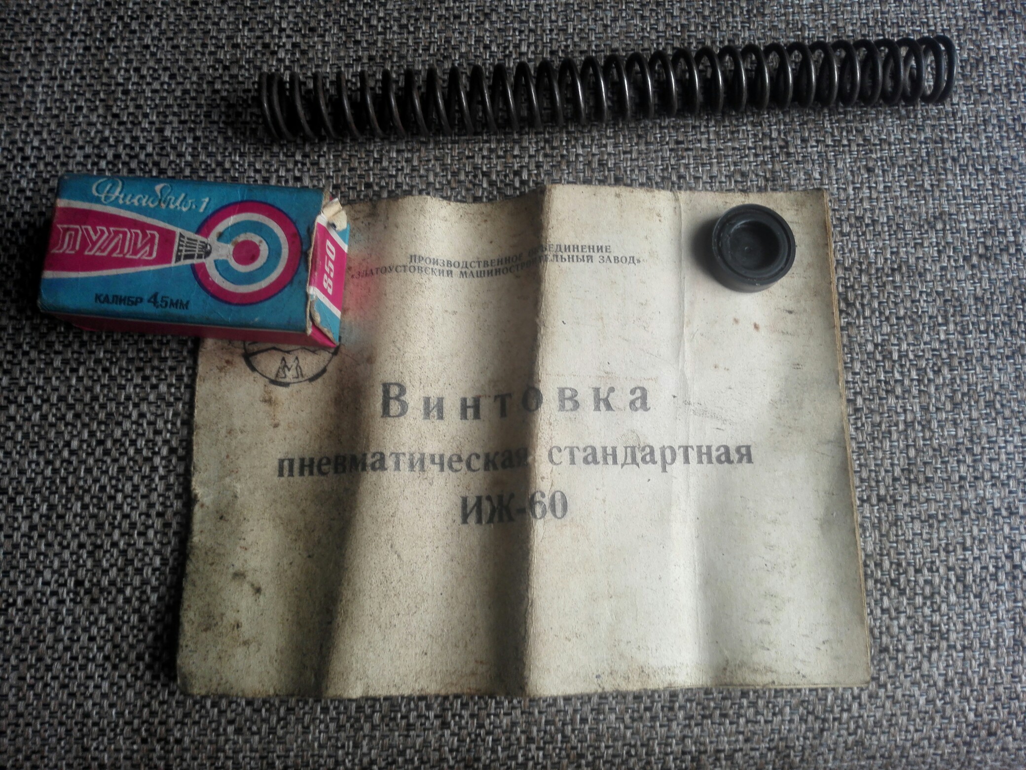 Продам Иж 60. СТ коробка металл. Состояние :co_ol: . нарезы :co_ol: . УСМ :co_ol: . в комплекте запасная пружина, запасная манжета (черная родная!) Пол пачки пуль (наверное тоже тех годов). Запасная вставка в мушку.