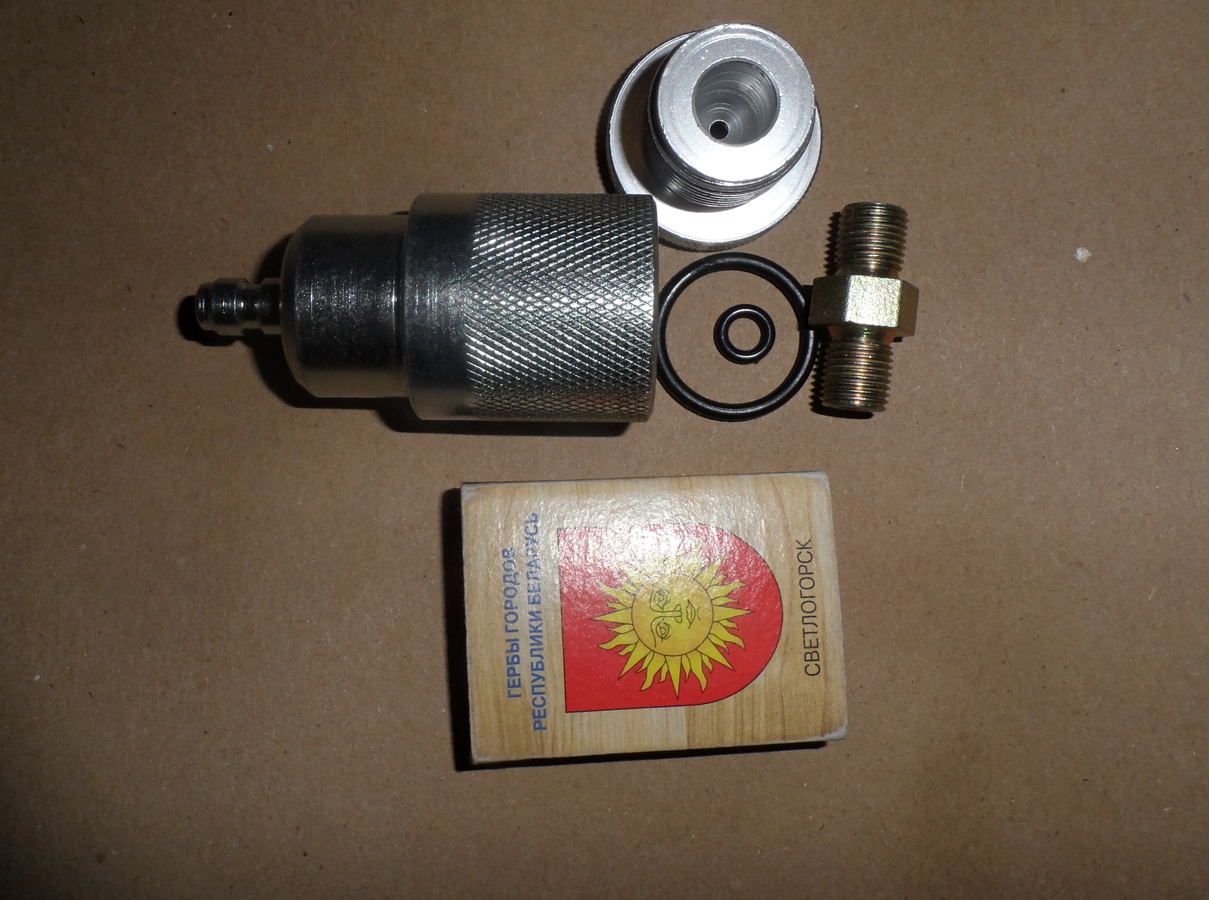 Продам осушитель. С наполнителем можно импровизировать. Для насоса, баллона... В комплекте резинки и переходник с мамы на папу М10х1. С другой стороны квик под фостер.