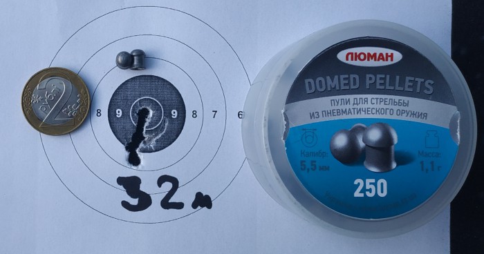 Раптор 3 5,5, коротыш. Люман 5,5мм вес 1,1грамм. Для лучшей кучности скорость делал ниже чем для JSB.