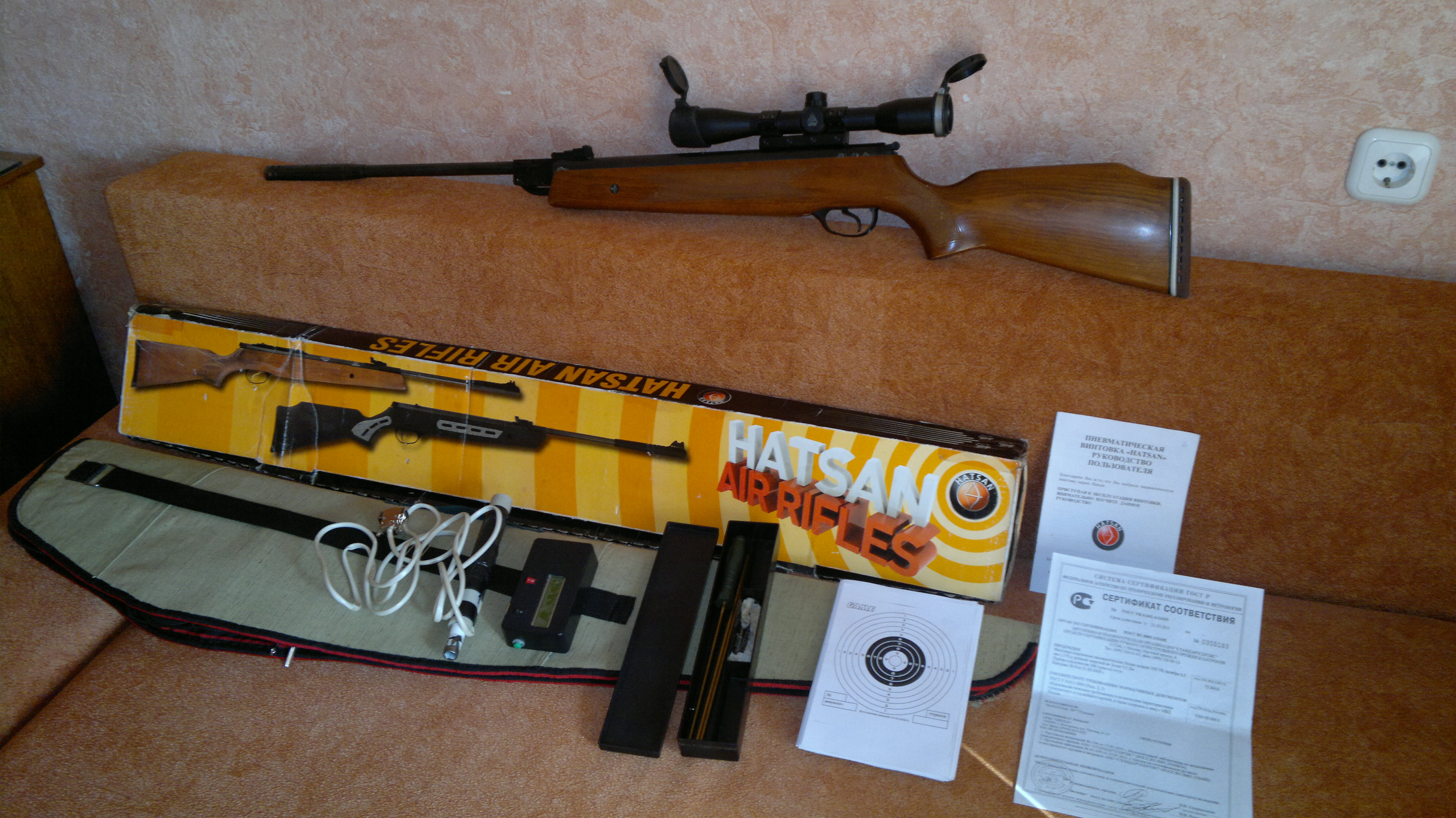 а реально; винтовка с чехлом 250-280р. прицел 80-100р. хронограф 50р. Набор для чистки пневматики в нагрузку...