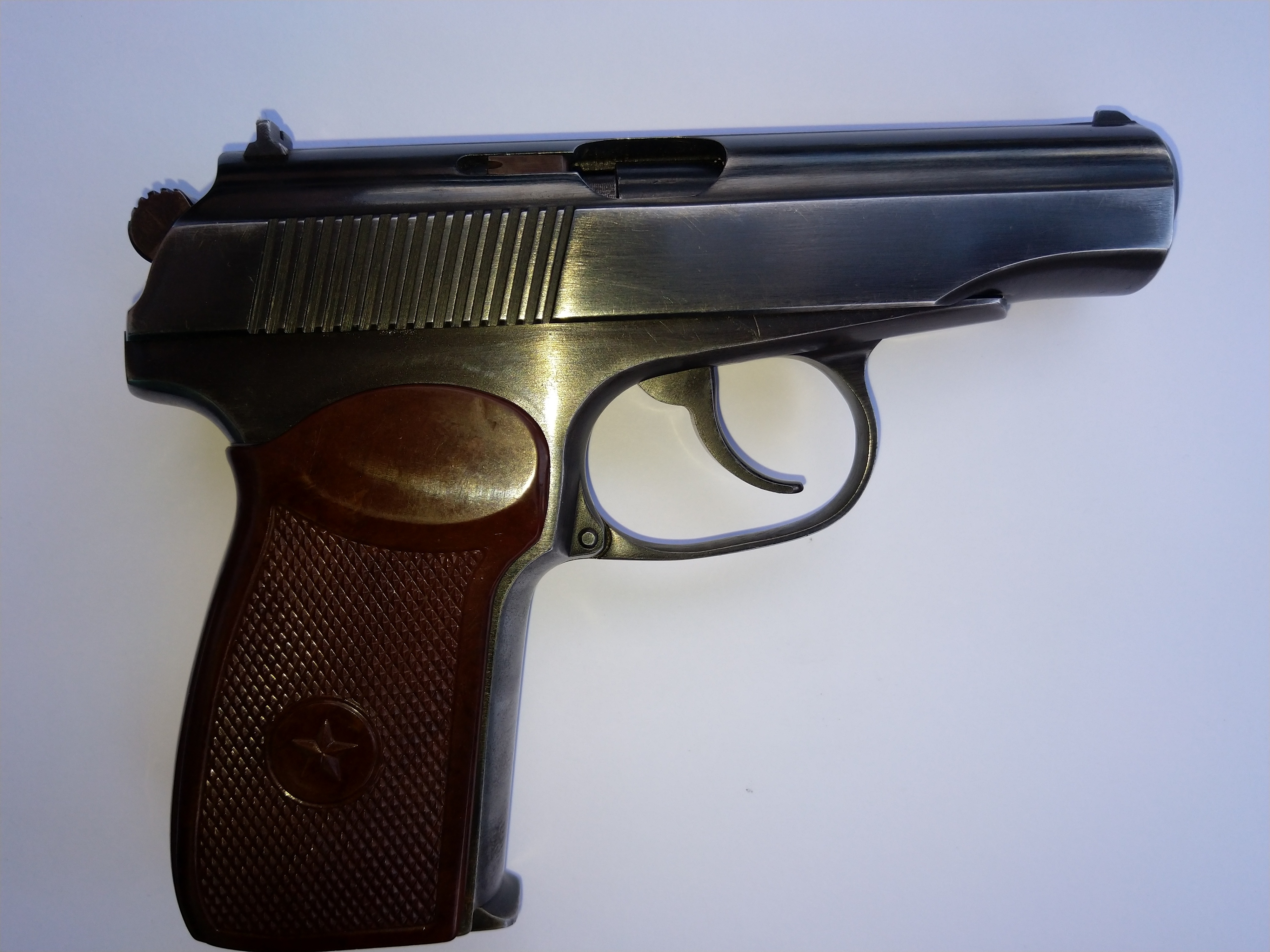 автор забыл указать что перемычки рукояти восстановлены, переделана планка на магазине, бакелитовая рукоятка, красный имитатор выбрасывателя и красный зип..