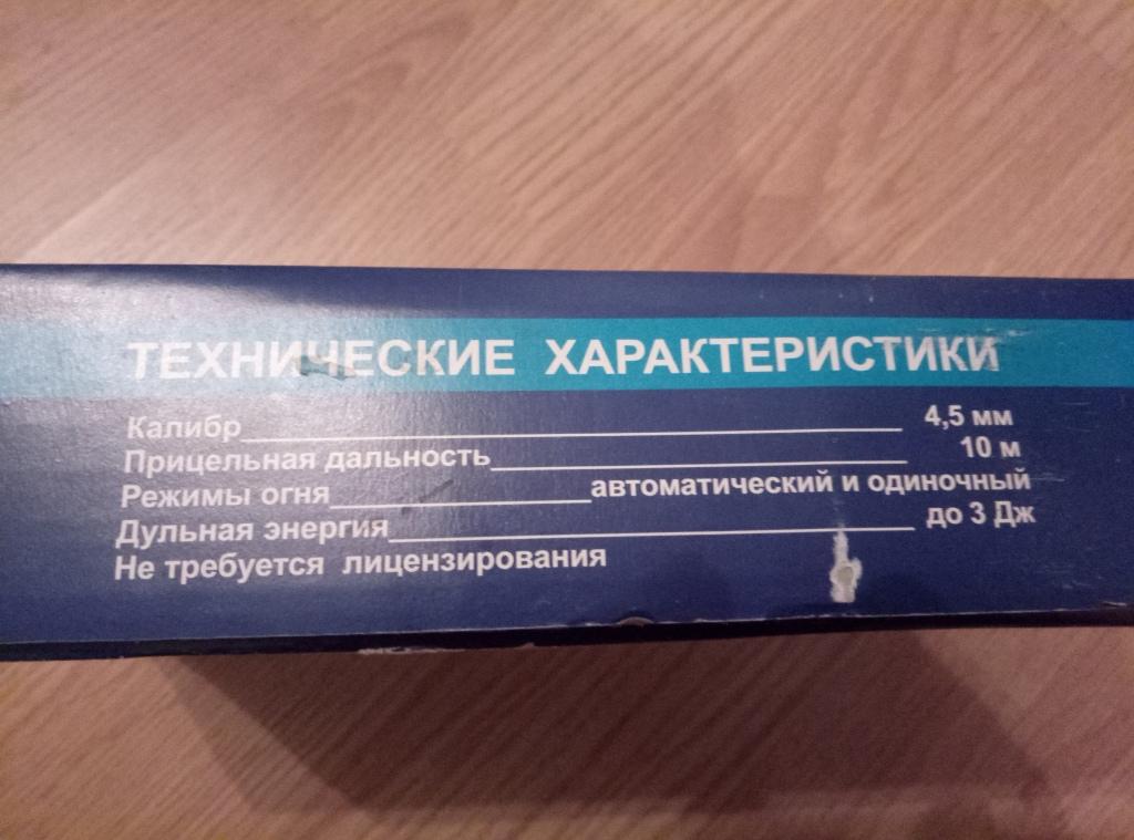 Дульная энергия не более 3 Дж, имеет два режима стрельбы (одиночными и очередями). Состояние нового изделия.