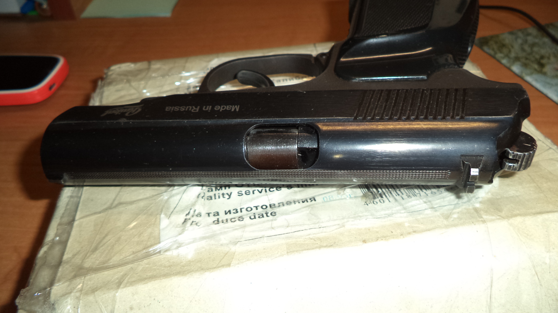 ПМ в отличном состоянии не смотря на годы. С ствол длинный, рукоятка бакелитовая от ПММ армированная. Пистолет в стоке . Борода с срезом красная тяга. Год выпуска 04. Задняя часть затвора округлая как у ПММ. Цена 200 рублей. МТС 80336863322.